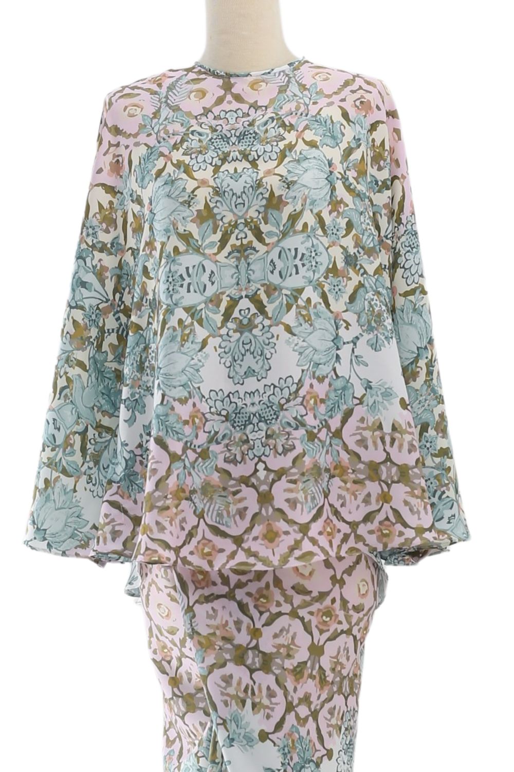 Description This loose cut long kaftan is prominent by its fresh, versatile cut, illuminated by batik floral. Our kaftan collection is designed to make you feel like the confident, stylish woman you were destined to be. Details: Composition 100% Heavy Satin Round Neckline Cuff sleeves 4” opening at the back with button Color: Powder Blush…
