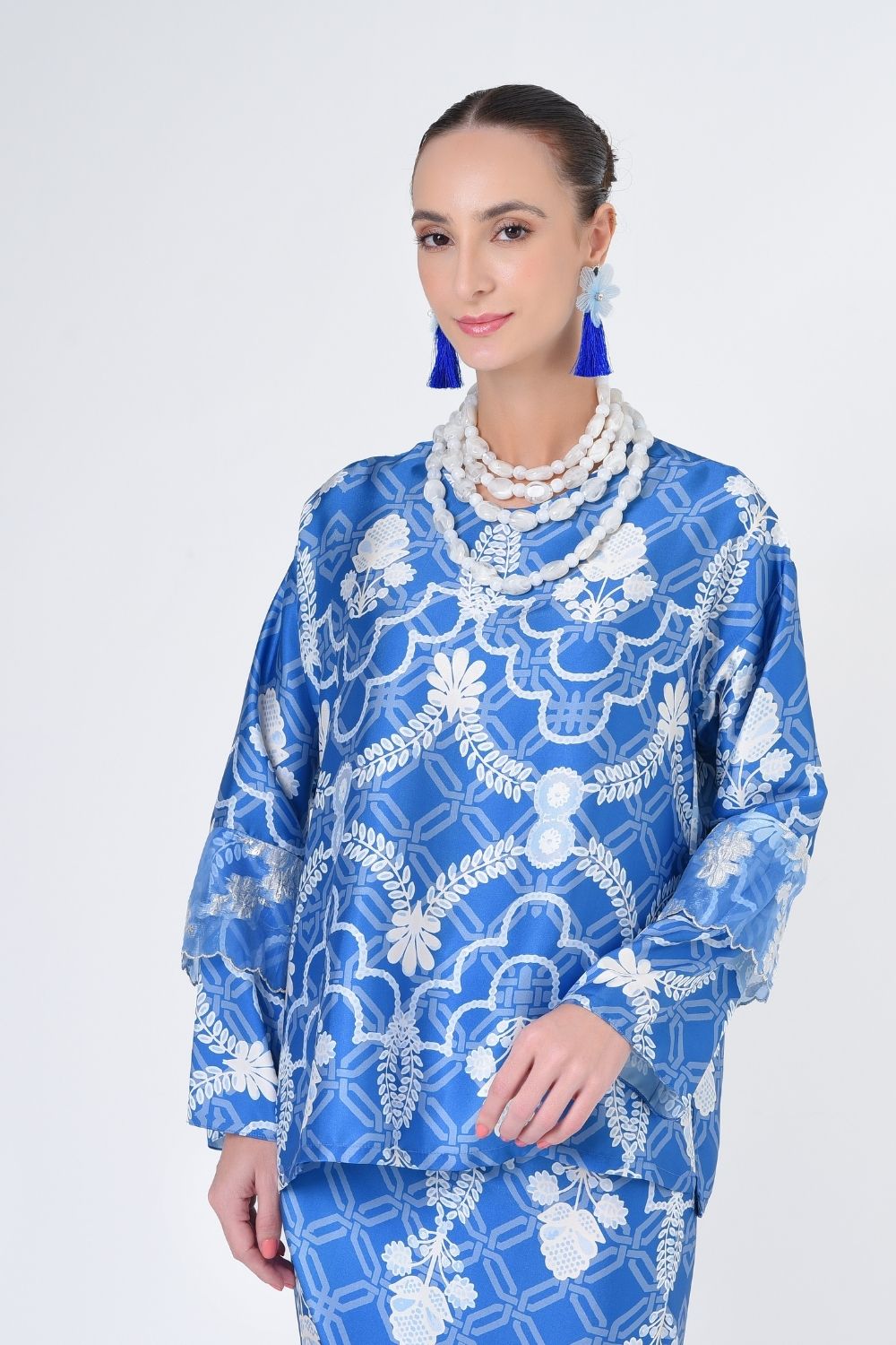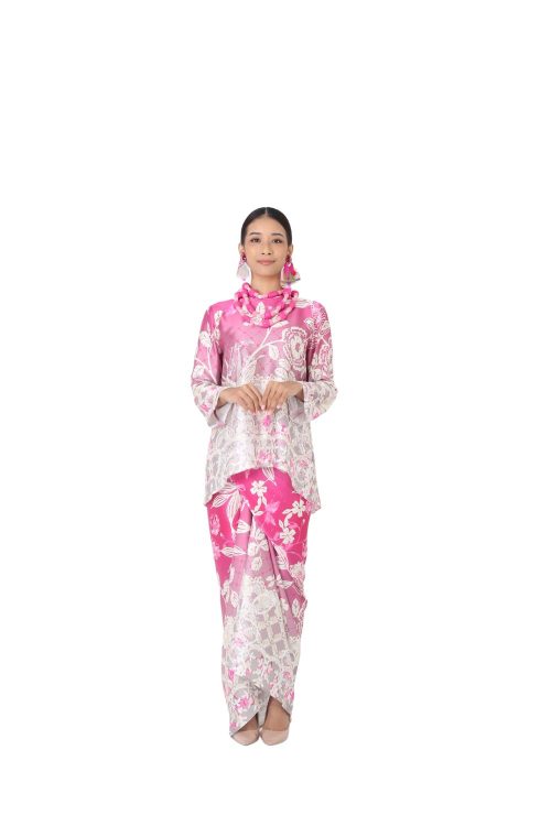 Description This loose kurung with side pesak with ikat sarong skirt is distinguished by its clean, versatile cut, illuminated by inspired hand drawn batik print as its foreground. Our two-piece collection are made from lightweight fabric and highlighted with delicate finishing. Details: ● Composition Twill ● ‘V’ Neck Collar ● Button Opening At The Back…