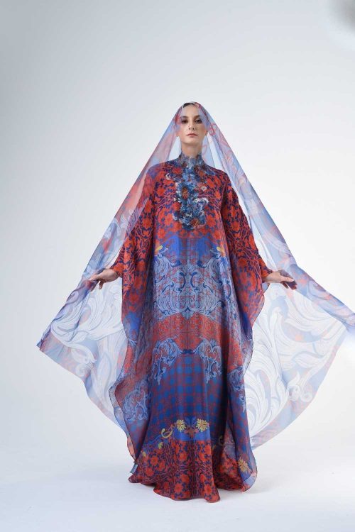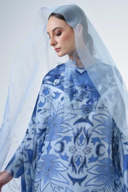 Description This loose cut long kaftan is prominent by its fresh, versatile cut, illuminated by modern geometric motif. Our kaftan collection is designed to make you feel like the confident, stylish woman you were destined to be. Details · Composition 100% Japanese Soft Organza · Round Neckline · Straight sleeves · Lining satin · 10”…