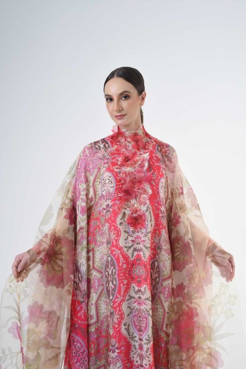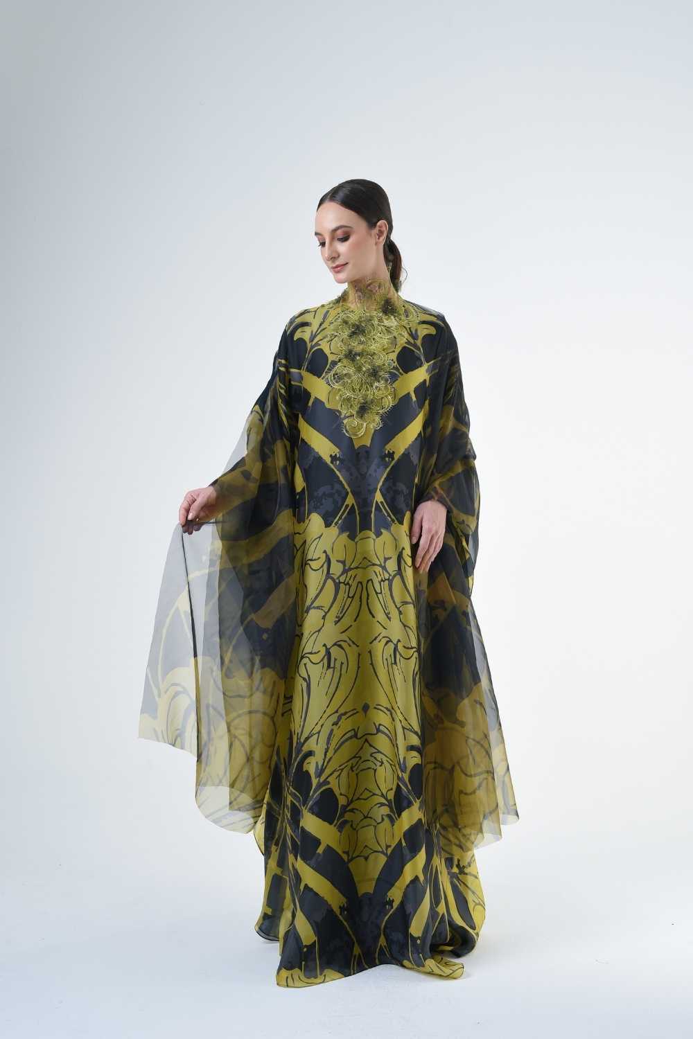 Description This loose cut long kaftan is prominent by its fresh, versatile cut, illuminated by modern geometric and floral batik motif. Our kaftan collection is designed to make you feel like the confident, stylish woman you were destined to be. Details · Composition 100% Japanese Soft Organza · Round Neckline · Straight sleeves · Lining…