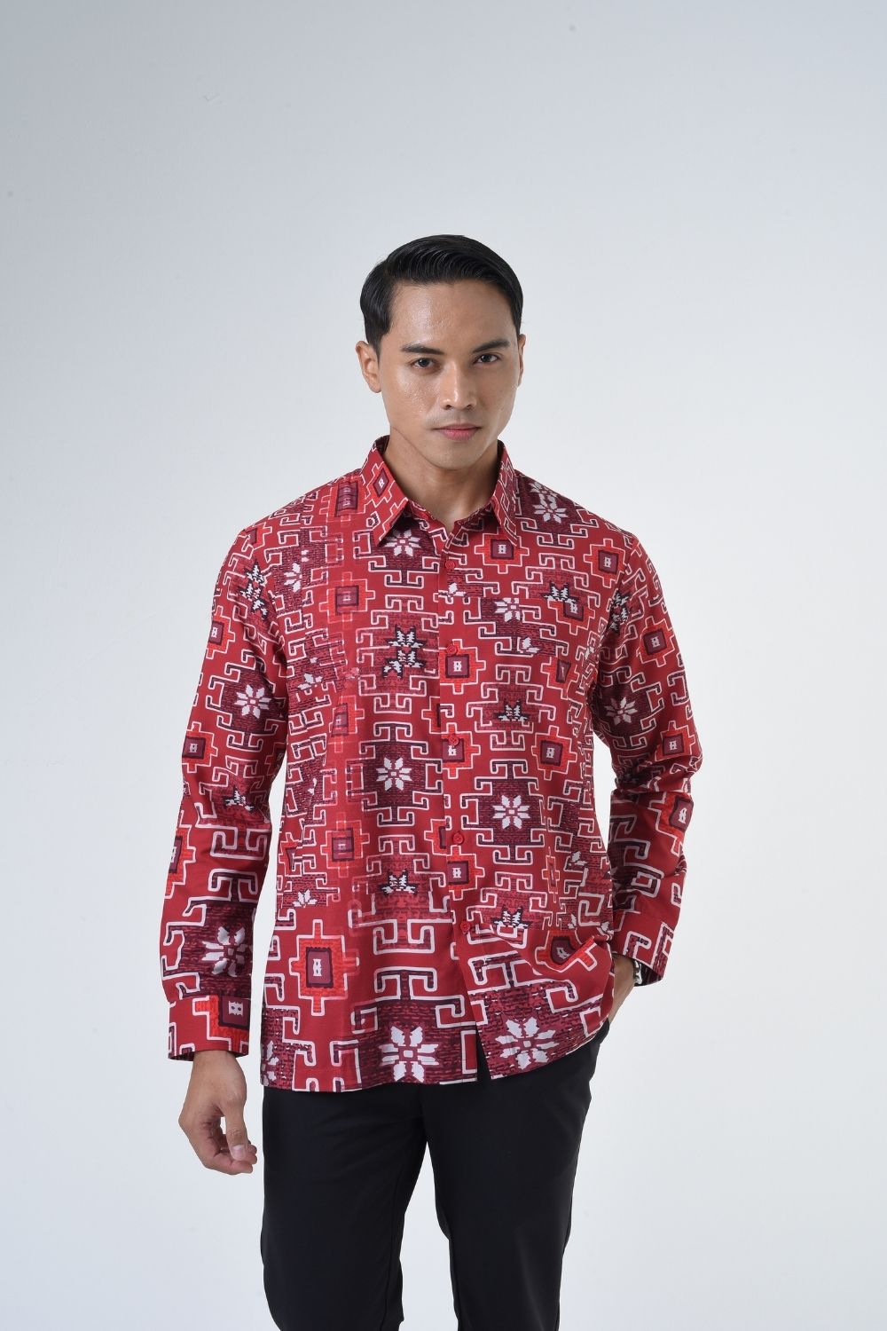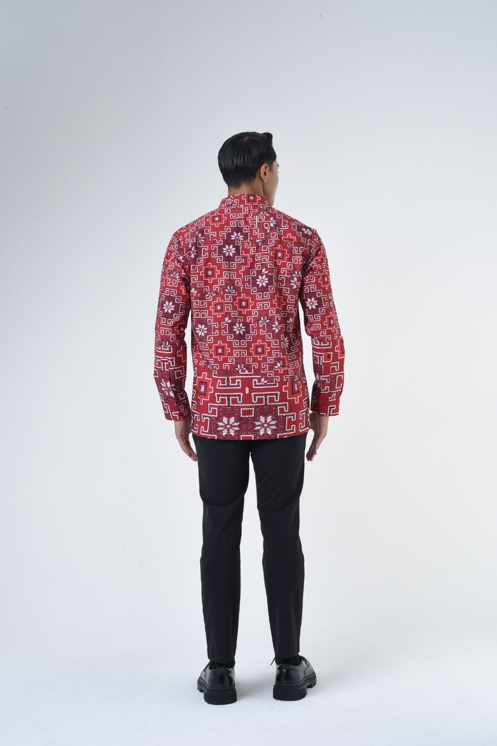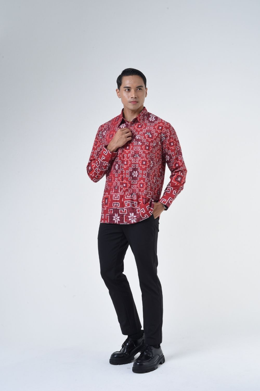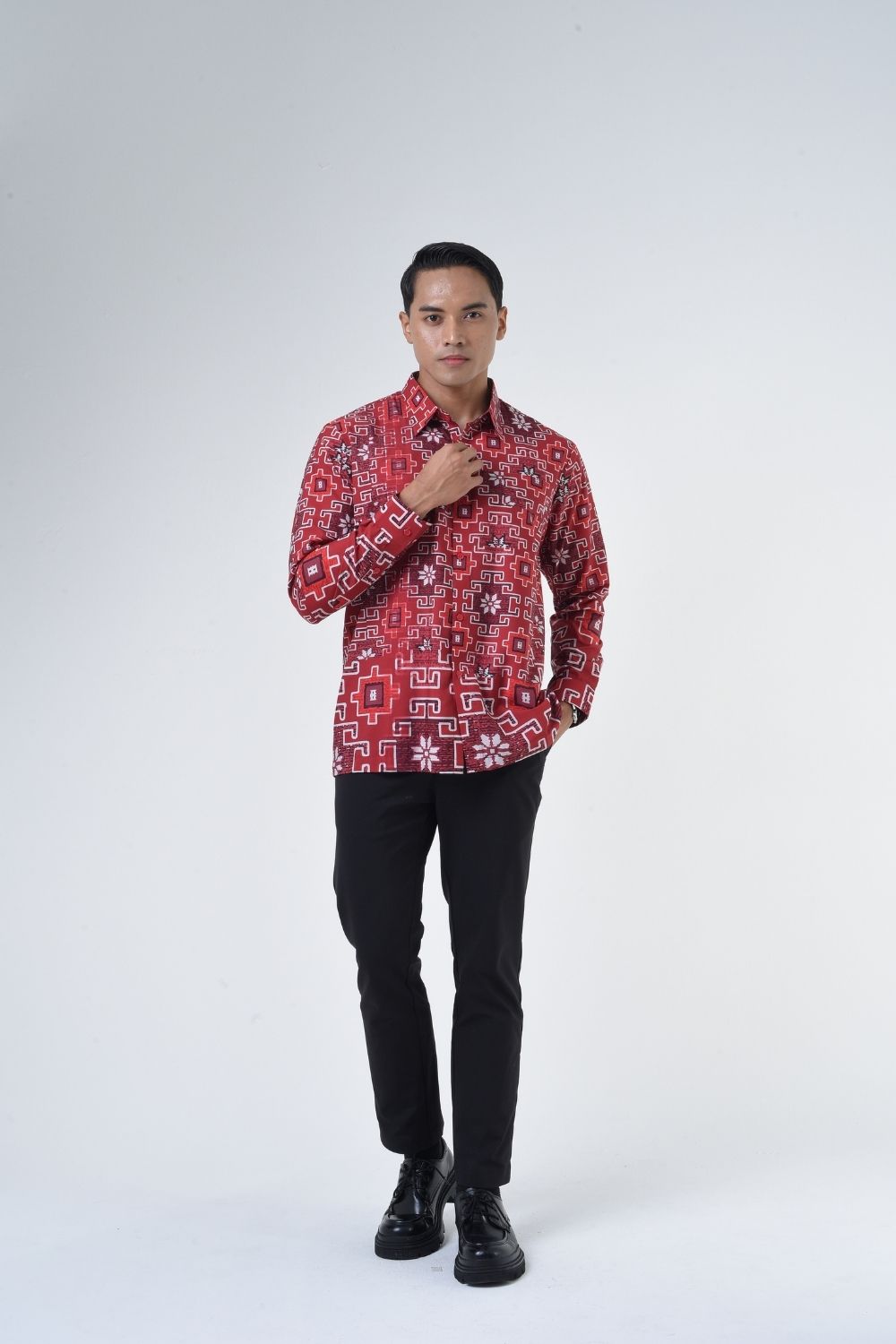 This relaxed cut men’s long sleeve batik shirt features intricate ethnic patterns. Its tailored fit makes it versatile for formal occasions, creating a striking statement piece that celebrates cultural heritage.
