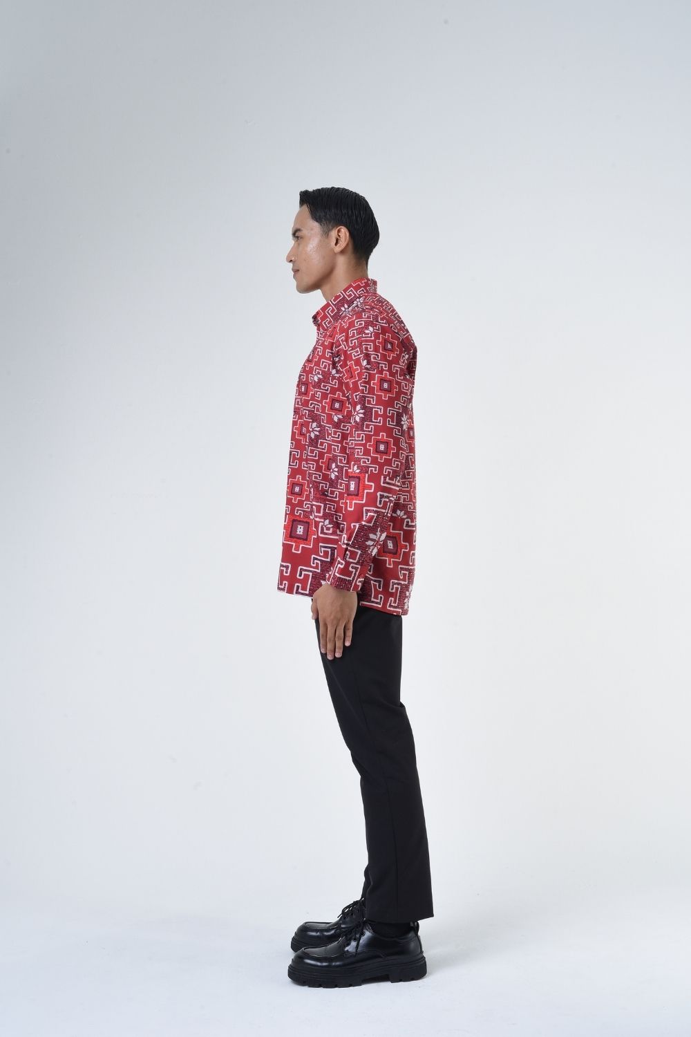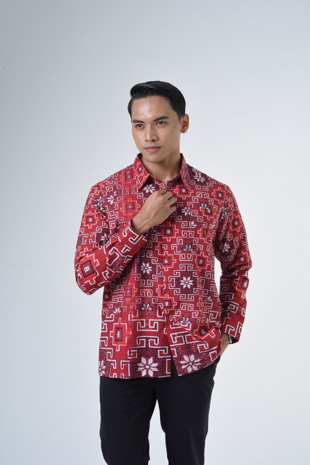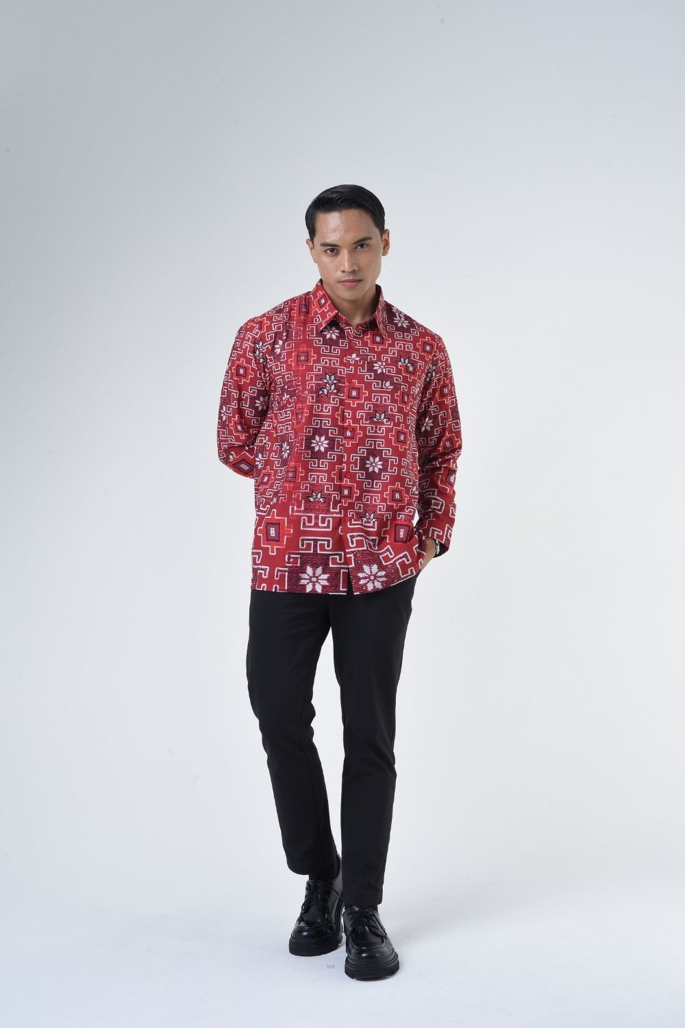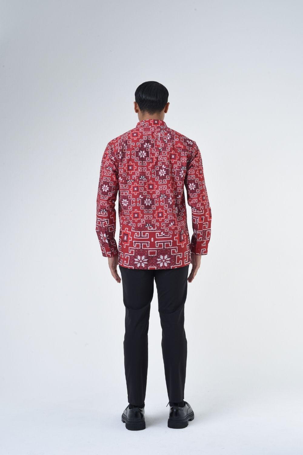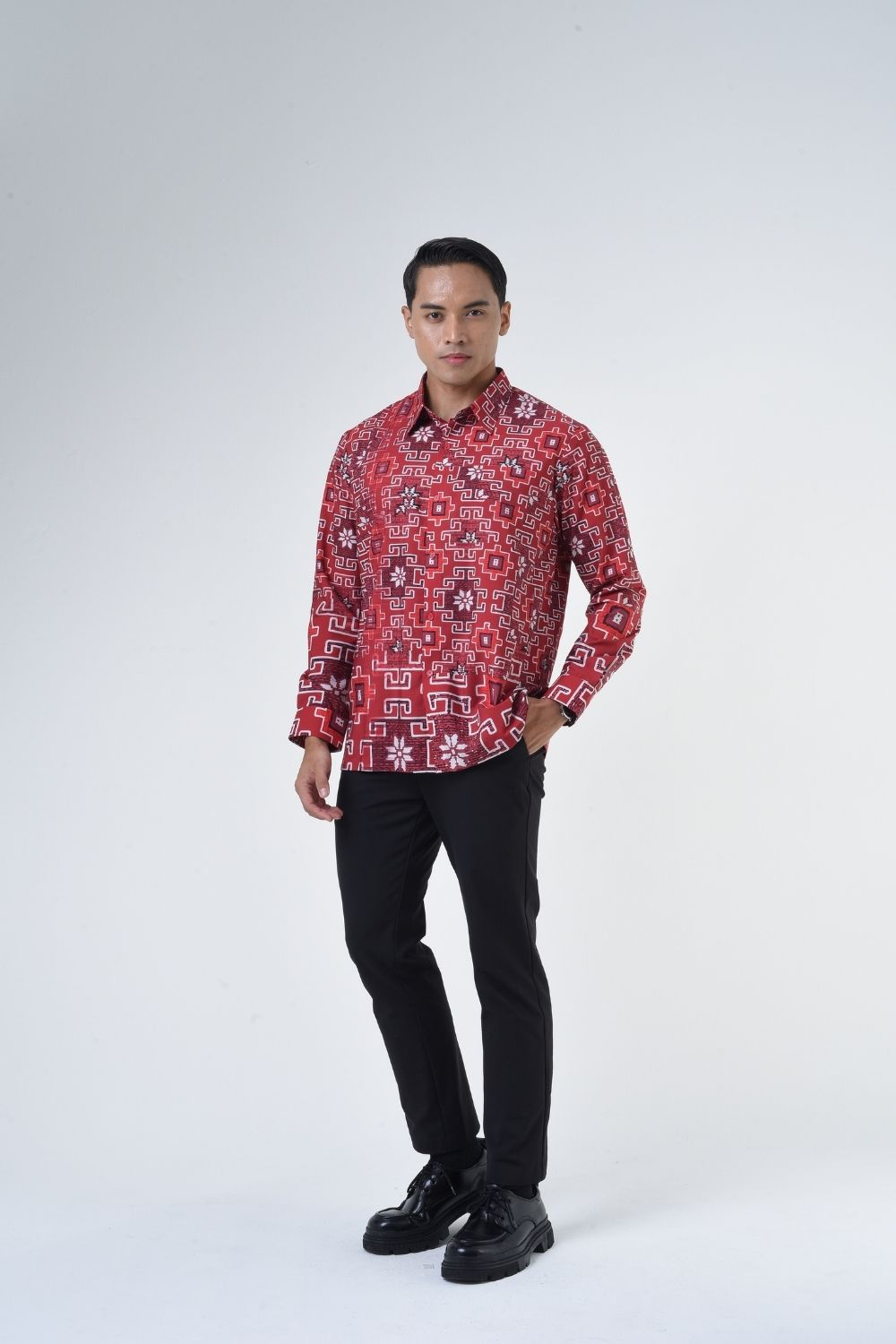 This relaxed cut men’s long sleeve batik shirt features intricate ethnic patterns. Its tailored fit makes it versatile for formal occasions, creating a striking statement piece that celebrates cultural heritage.