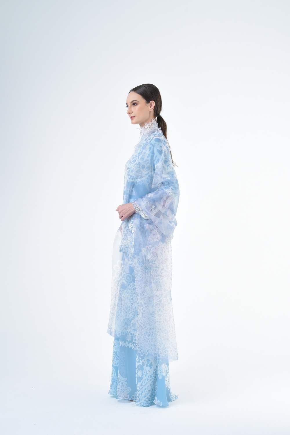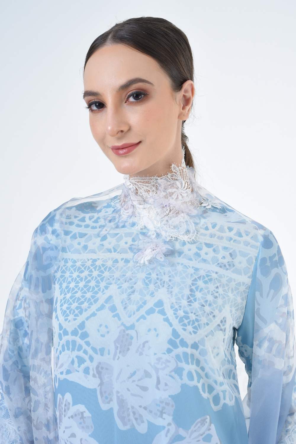 - A-cut sleeves cording lace detailing at the sleeves