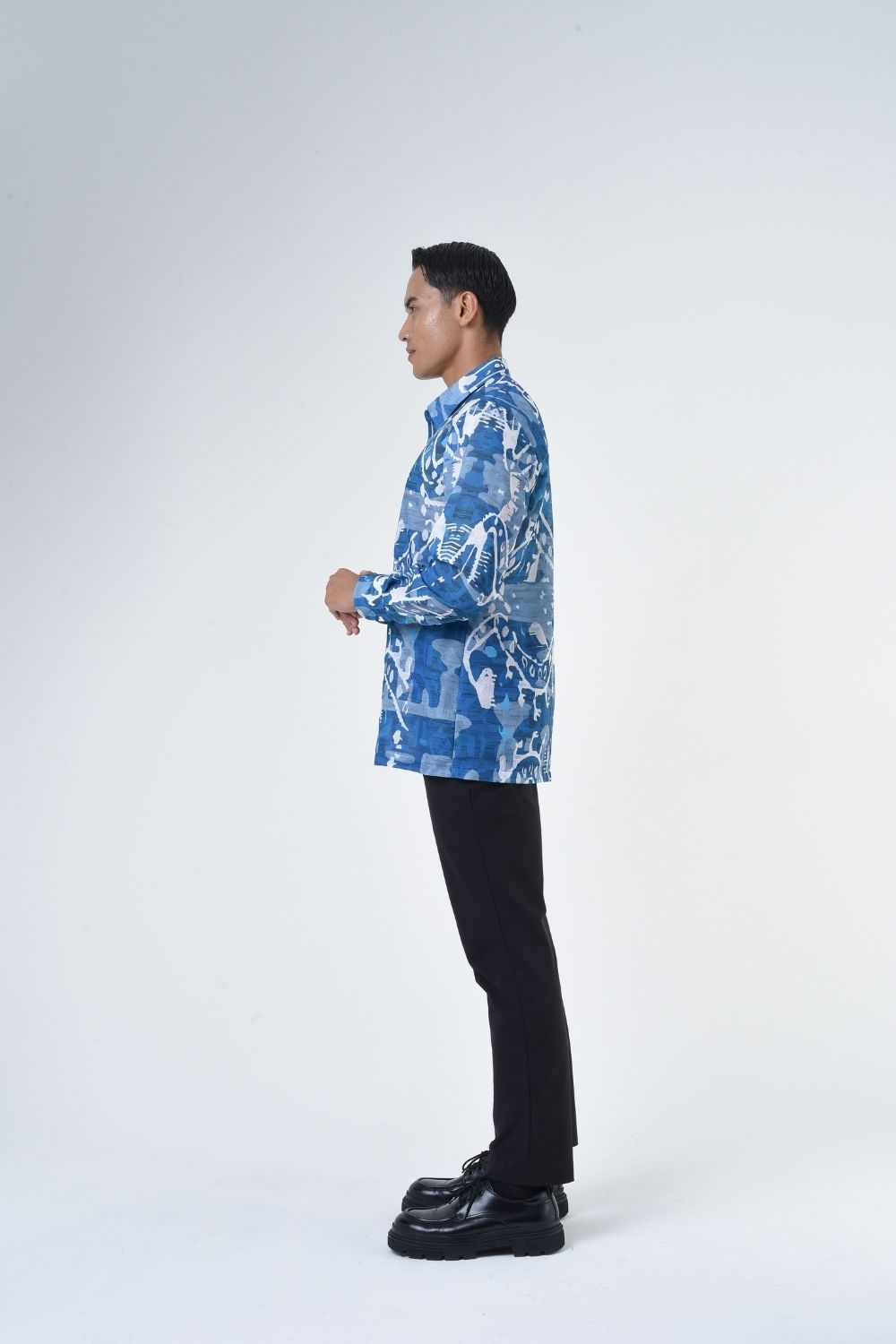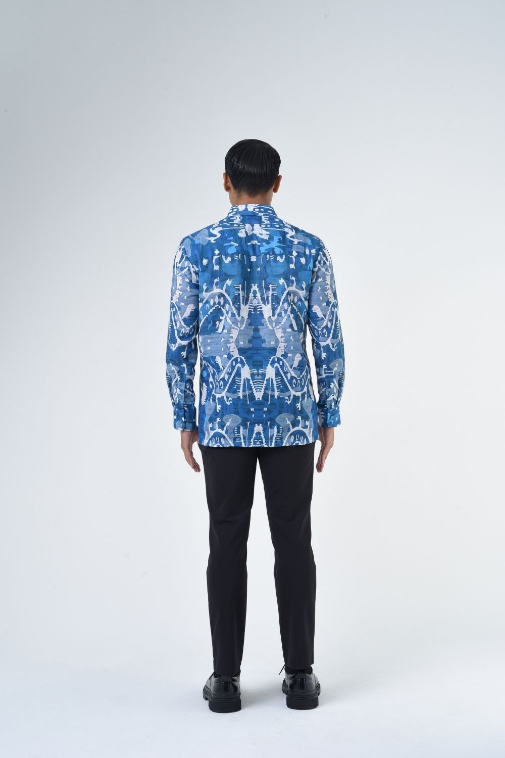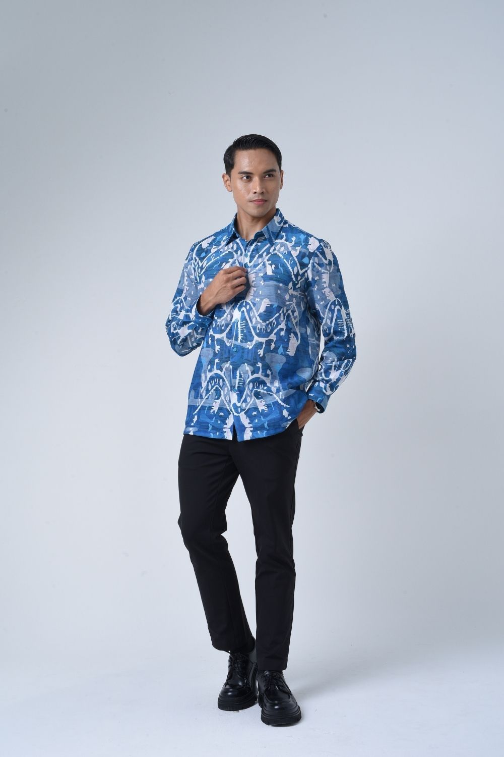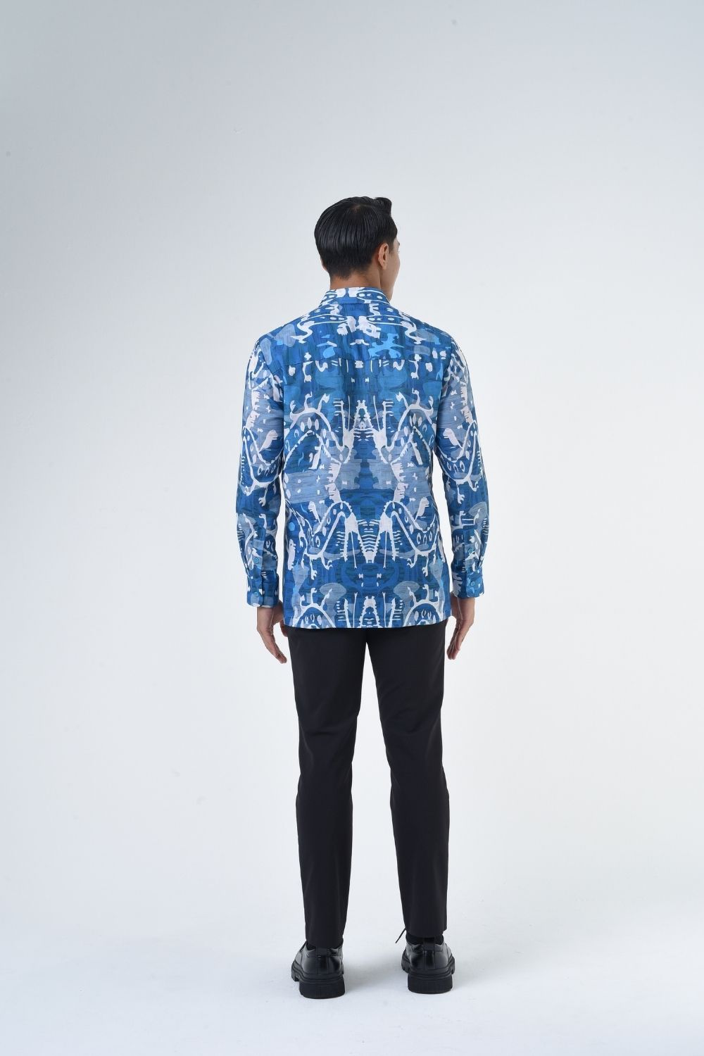 This relaxed cut men’s long sleeve batik shirt features intricate ethnic patterns. Its tailored fit makes it versatile for formal occasions, creating a striking statement piece that celebrates cultural heritage.