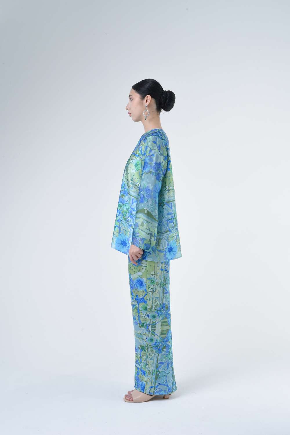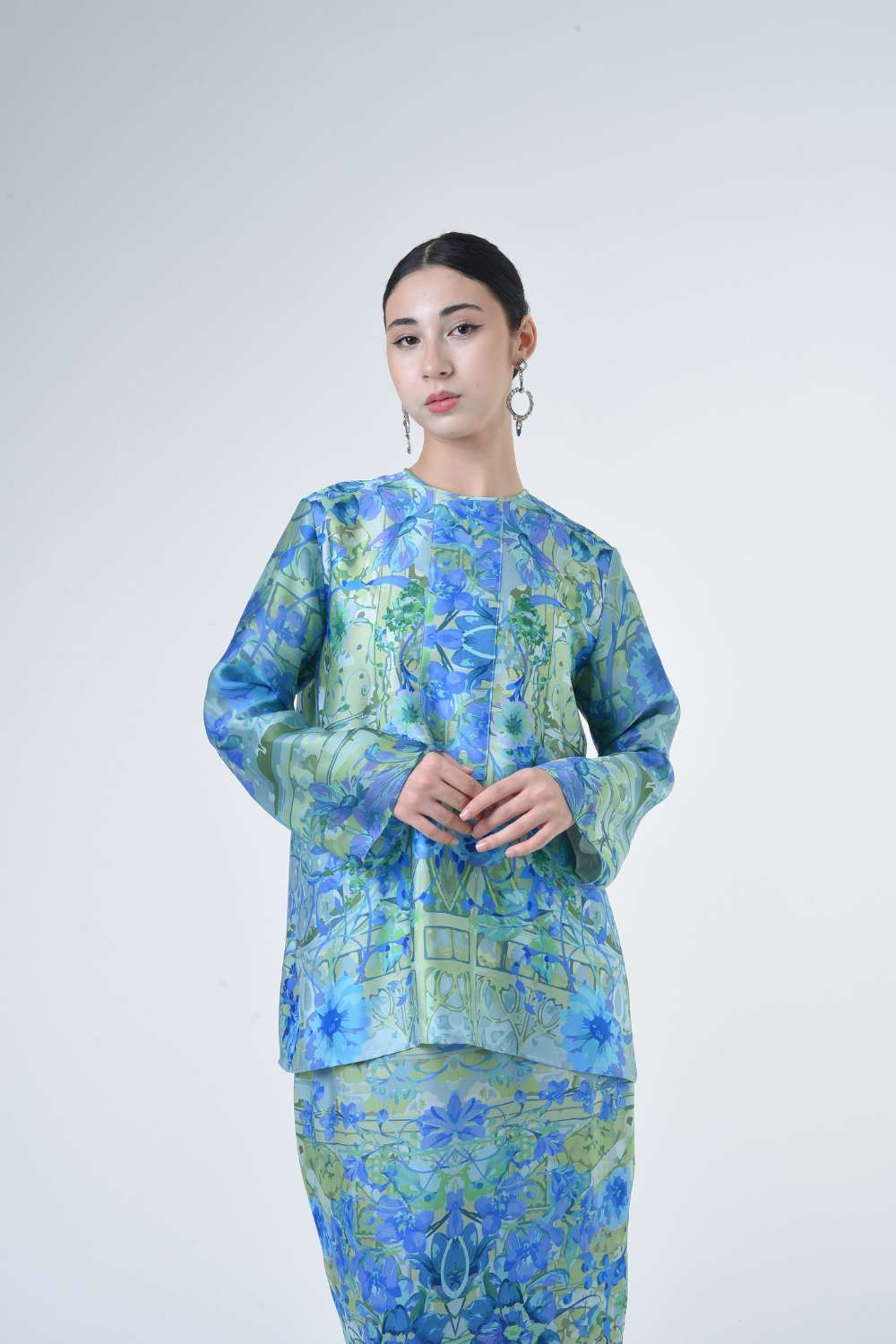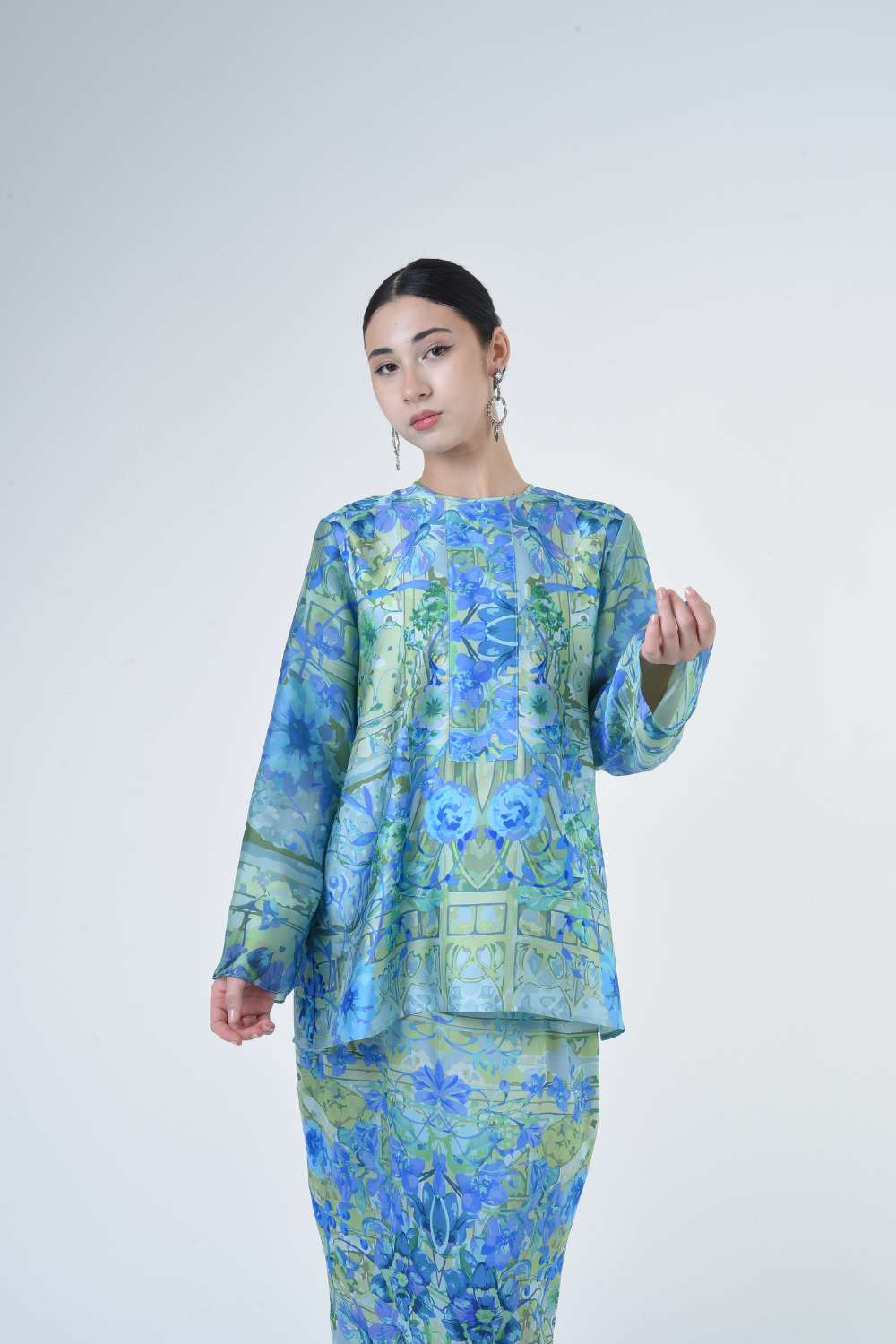 This stylish two-piece set features a loose A-cut top in the short kurung style, paired with a box pleated skirt. Designed with a contemporary floral abstract motif, it offers a fresh and versatile look, perfect for any occasion. Tailored for the confident, stylish woman, this collection exudes effortless elegance and charm.