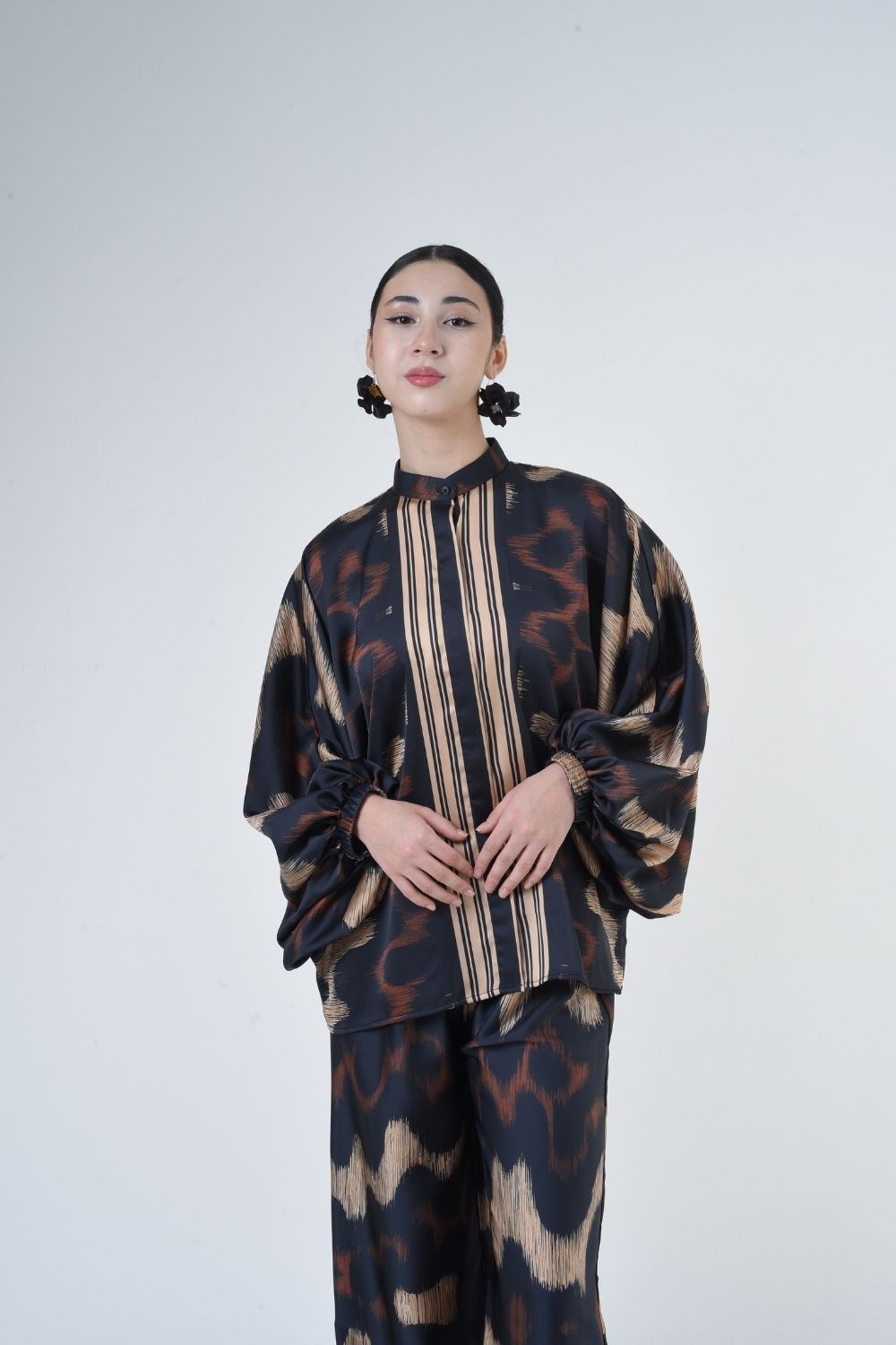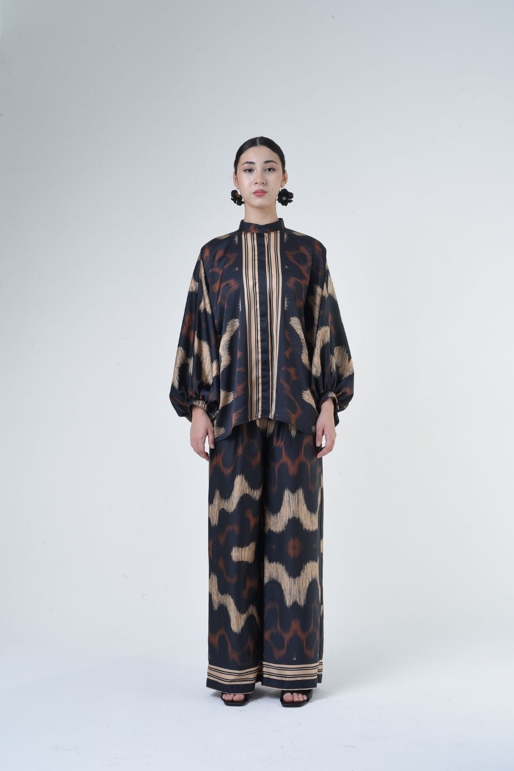 This 2-piece loose top with loose pants is distinguished by its fresh, versatile cut, enlightened by ikat batik placement. Our collection is designed to make you feel like the confident, stylish woman you were destined to be.