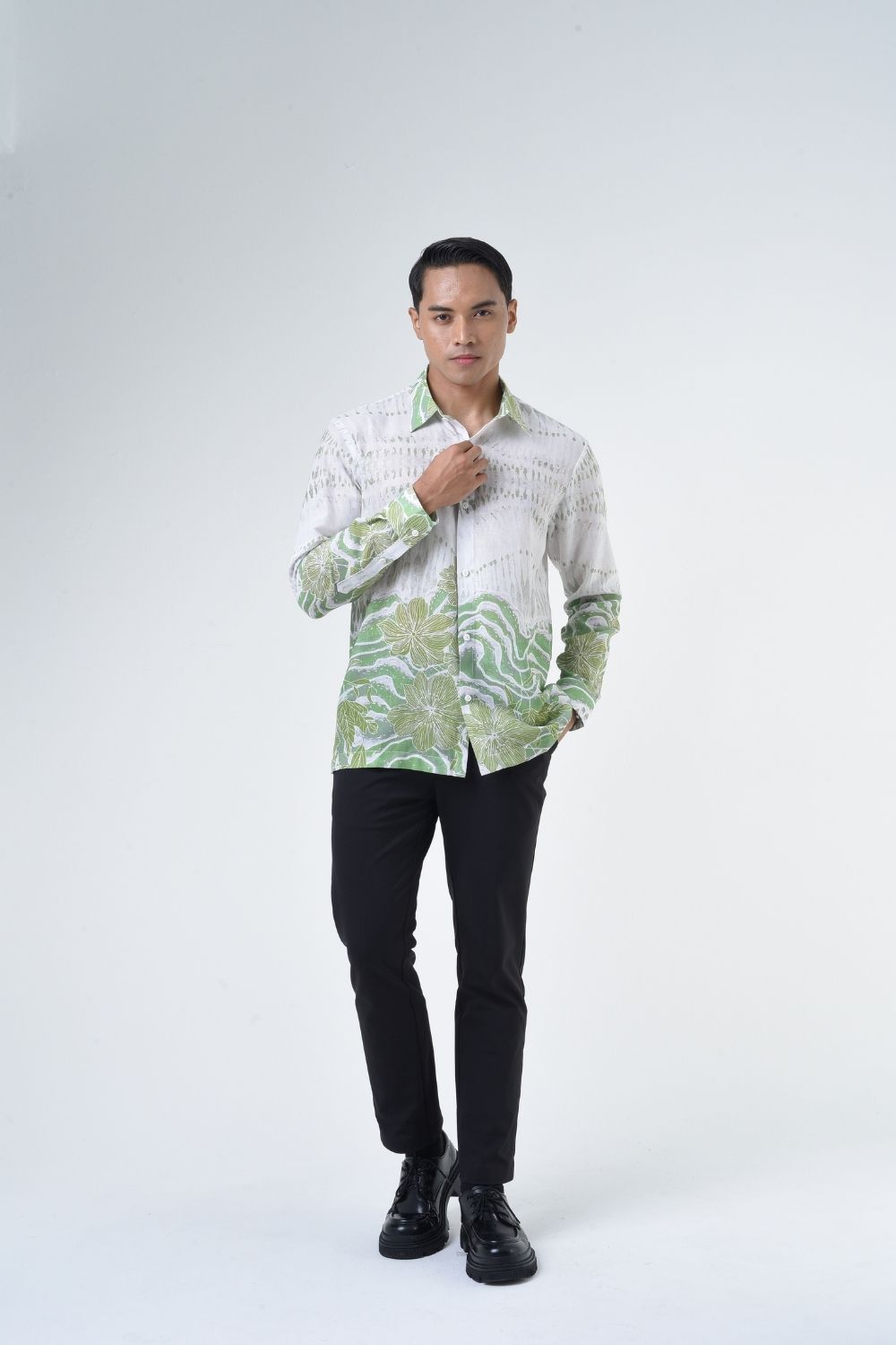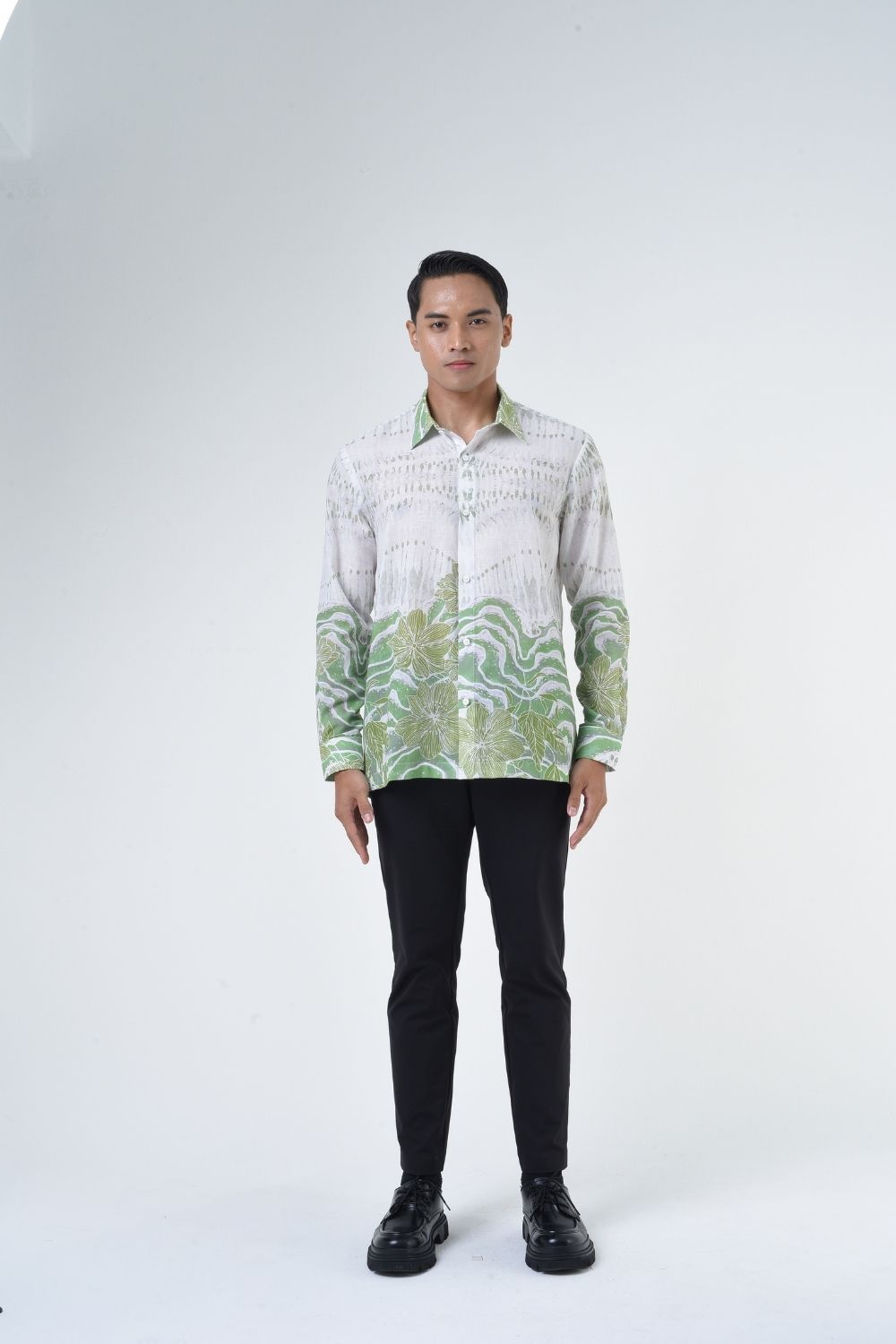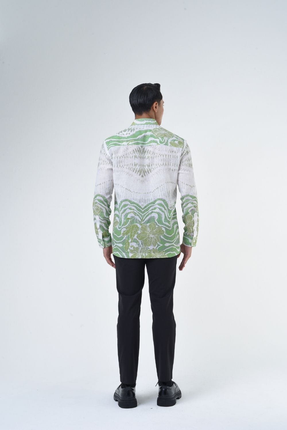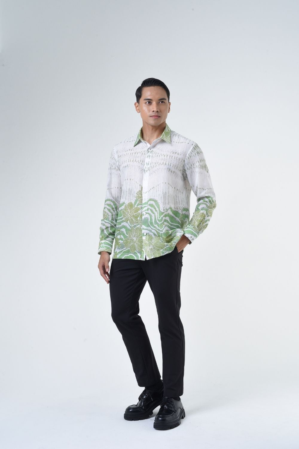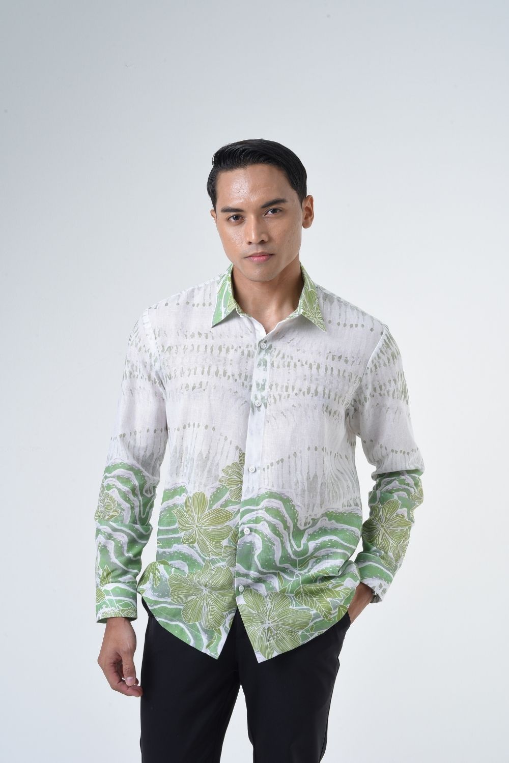 This relaxed cut men’s long sleeve batik shirt features intricate ethnic patterns. Its tailored fit makes it versatile for formal occasions, creating a striking statement piece that celebrates cultural heritage.
