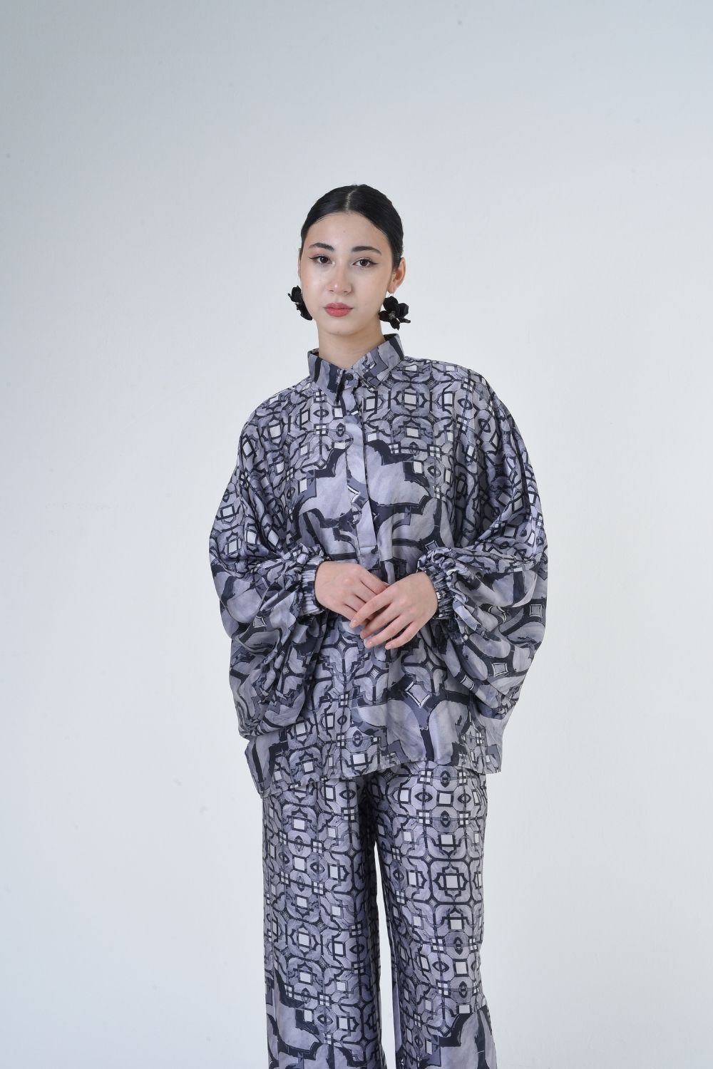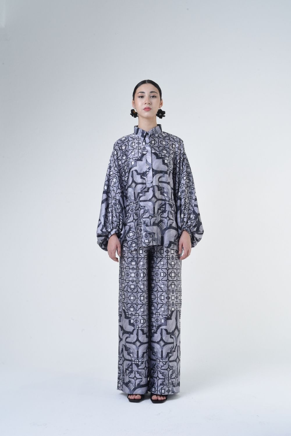 This 2-piece loose top with loose pants is distinguished by its fresh, versatile cut, enlightened by modern antique tiles placement. Our collection is designed to make you feel like the confident, stylish woman you were destined to be.