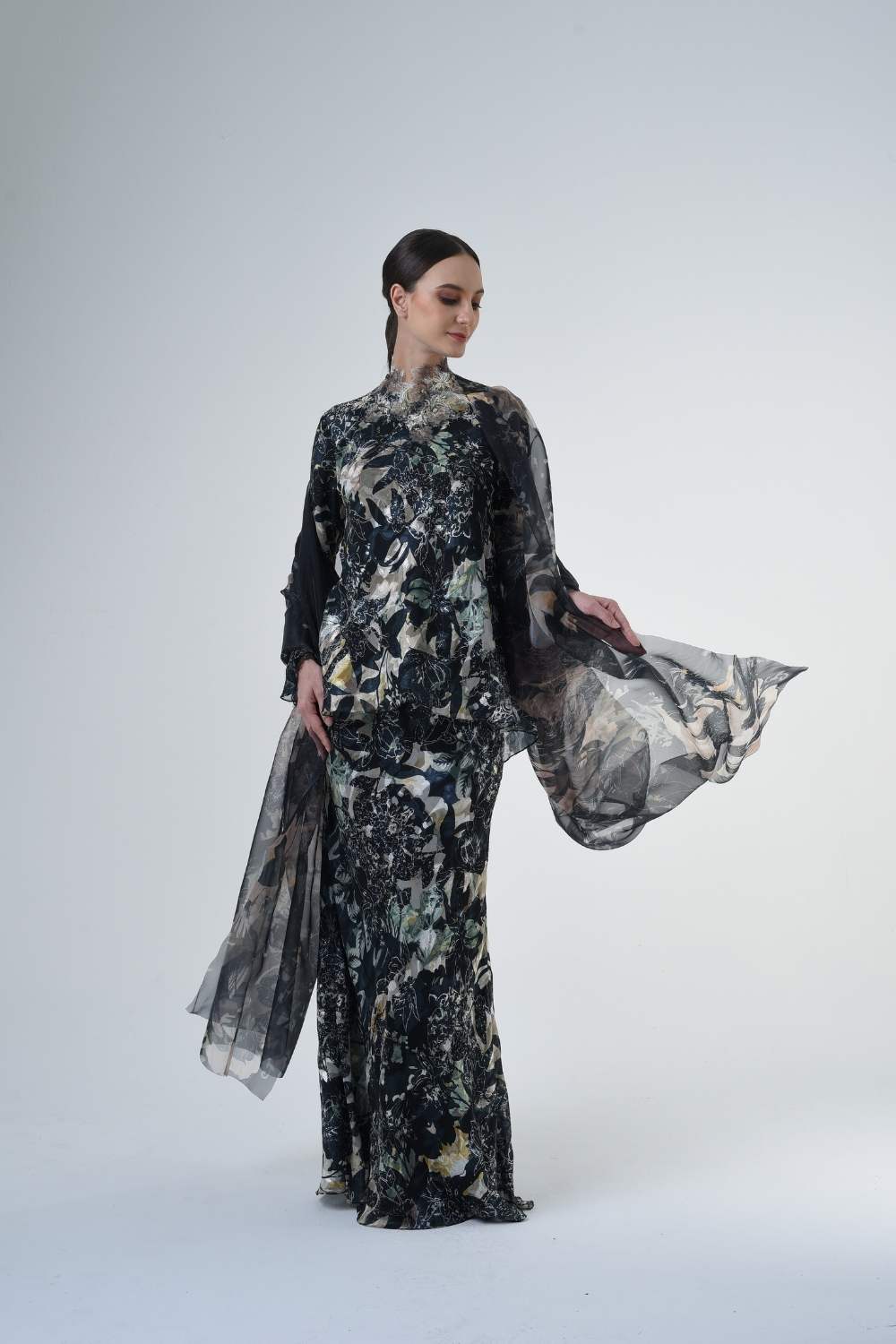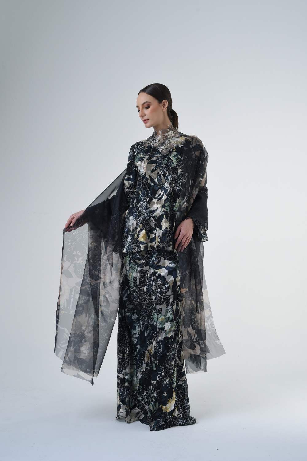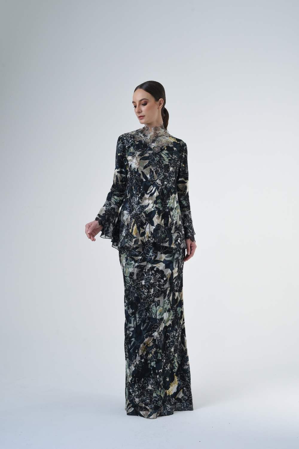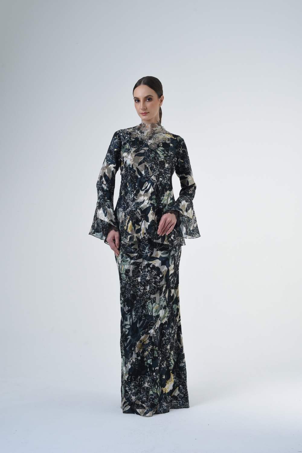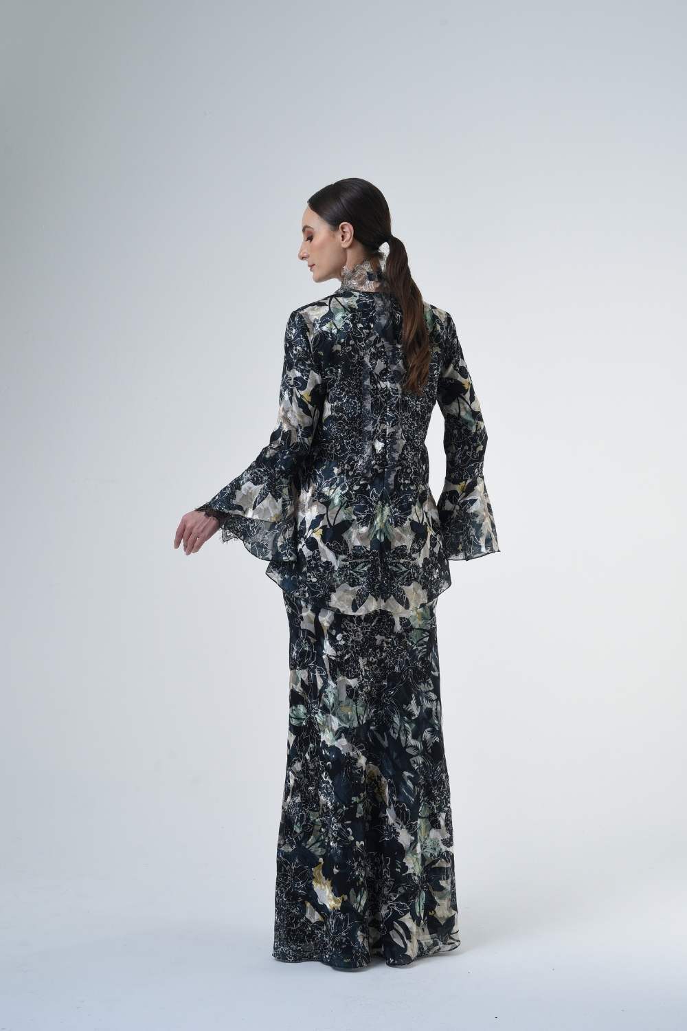 This stylish two-piece set features a loose fitting cut top in the modern short kurung style, paired with a bias cut skirt. Layered Lace details attach on bottom of sleeves Designed with a contemporary batik floral motif, it offers a fresh and versatile look, perfect for any occasion. Tailored for the confident, stylish woman, this collection exudes effortless elegance and charm.