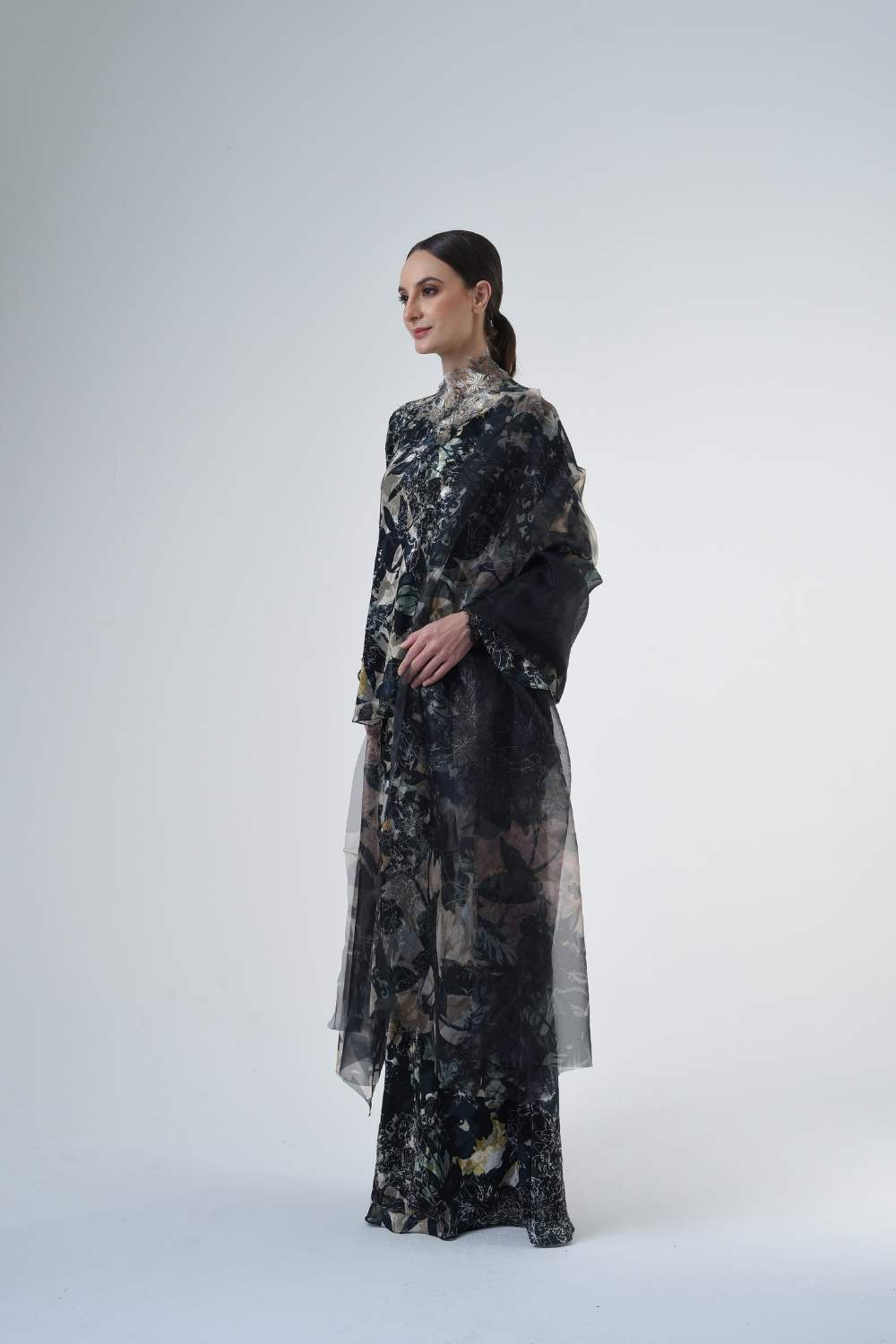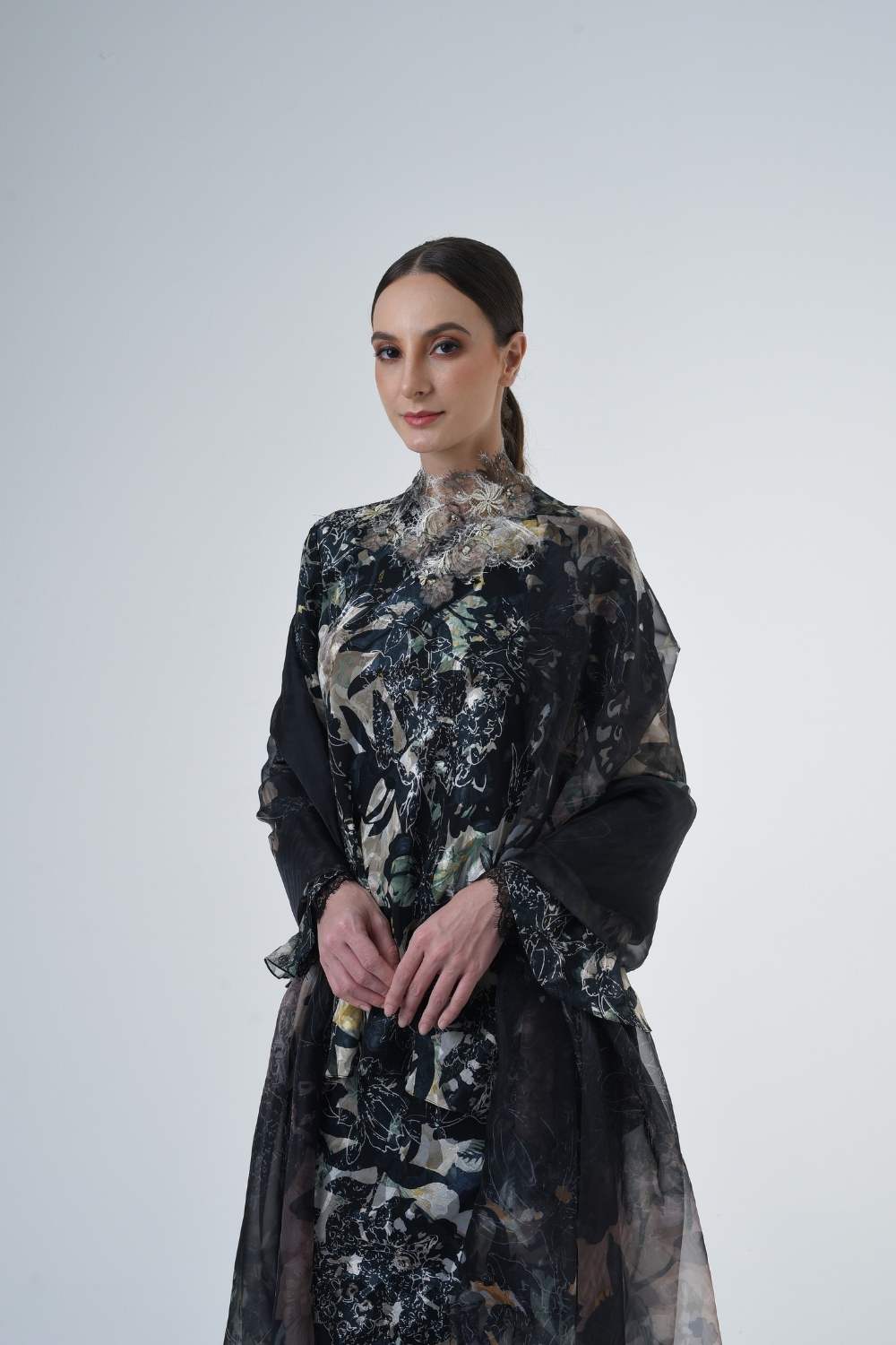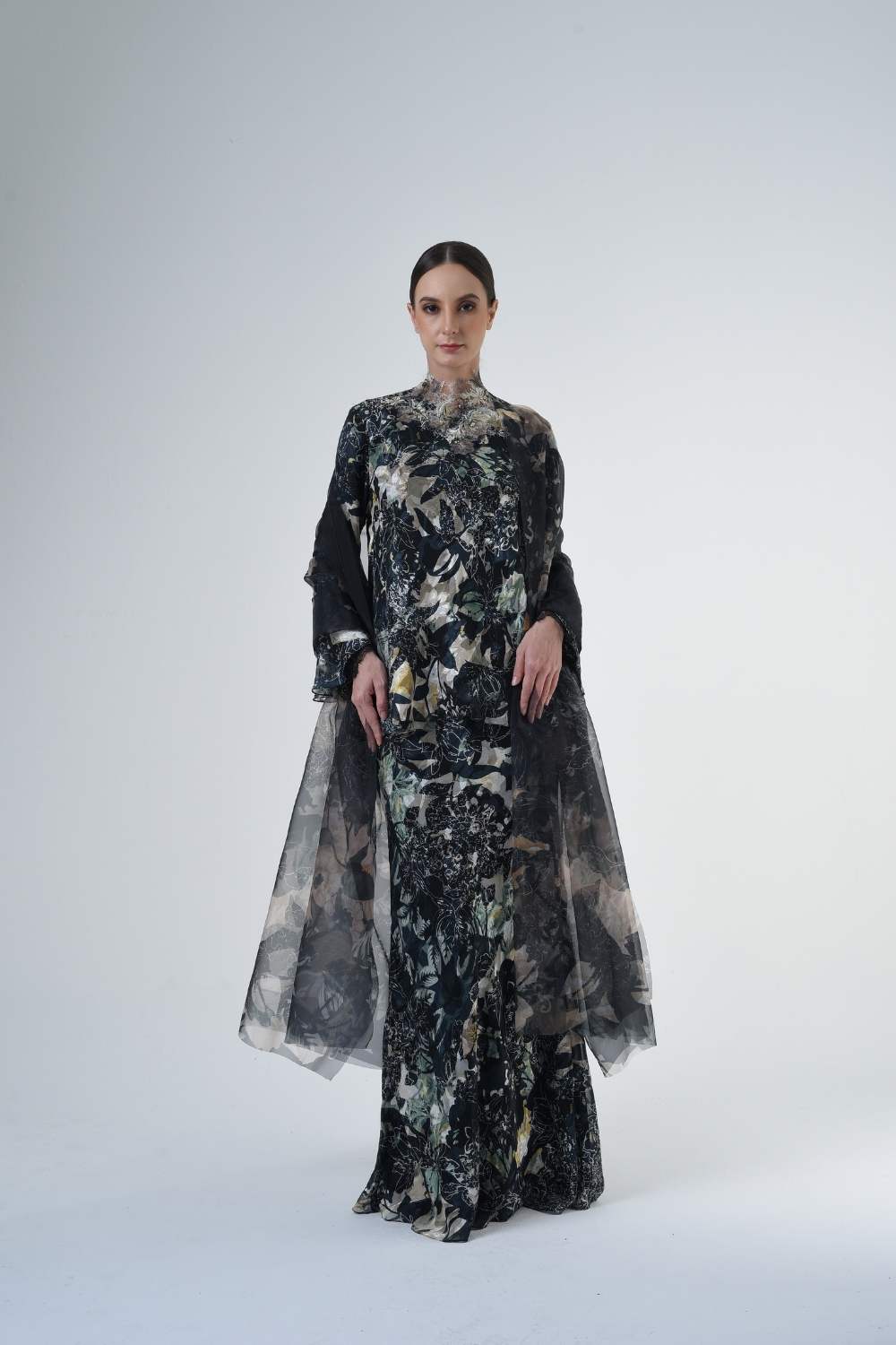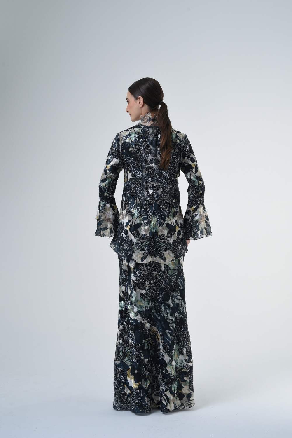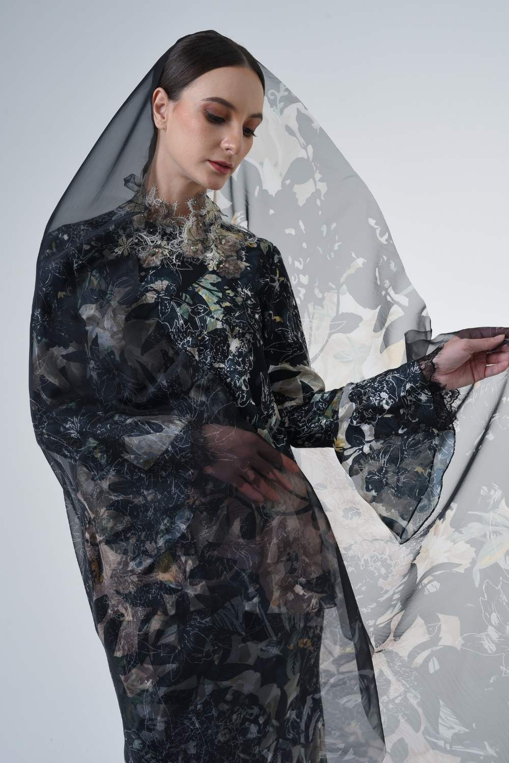This stylish two-piece set features a loose fitting cut top in the modern short kurung style, paired with a bias cut skirt. Layered Lace details attach on bottom of sleeves Designed with a contemporary batik floral motif, it offers a fresh and versatile look, perfect for any occasion. Tailored for the confident, stylish woman, this collection exudes effortless elegance and charm.