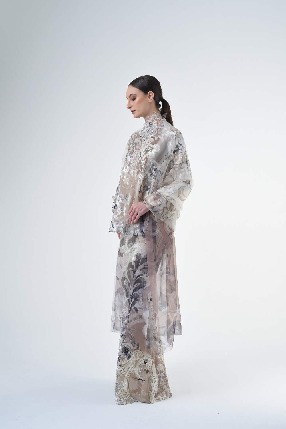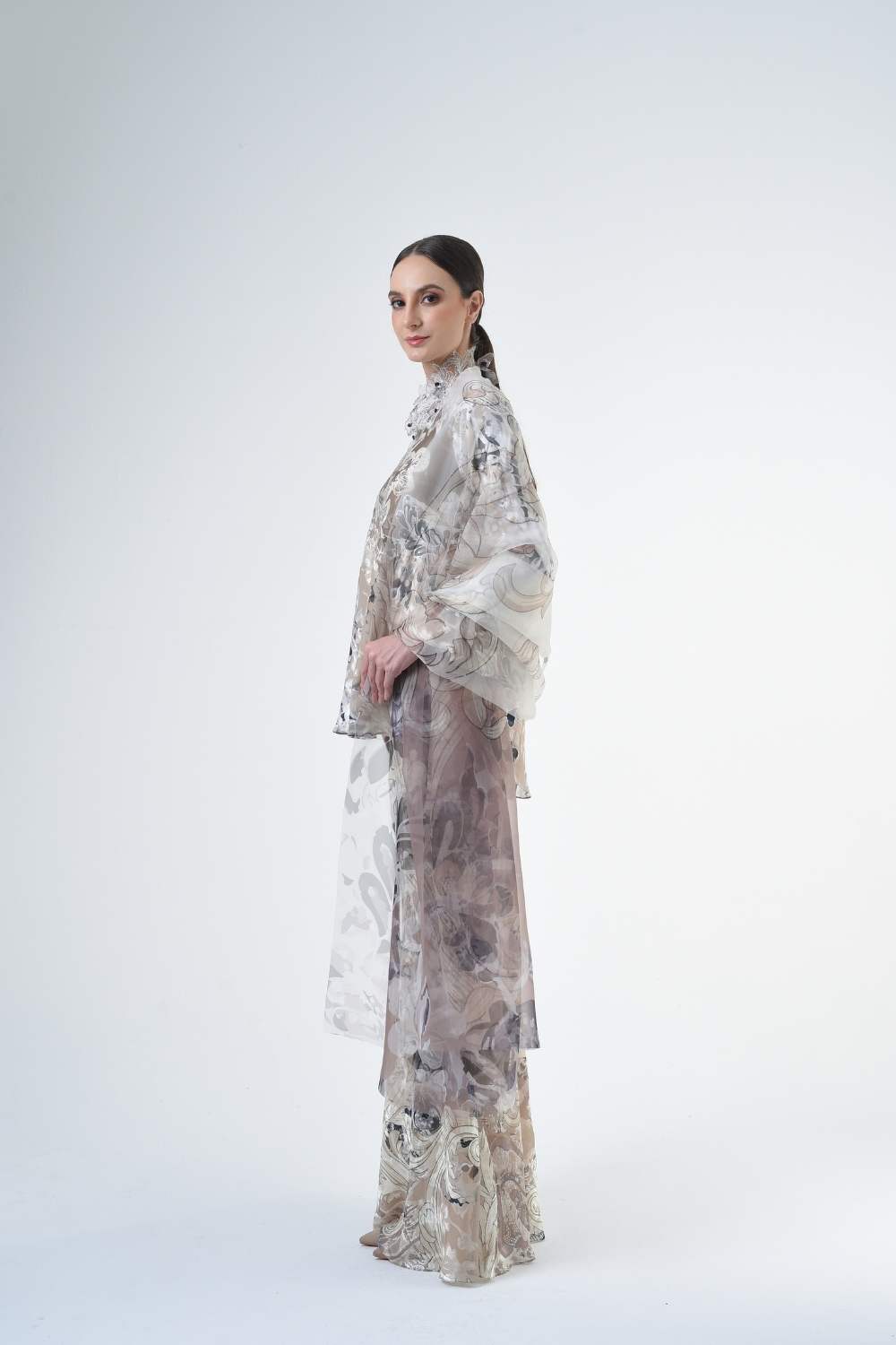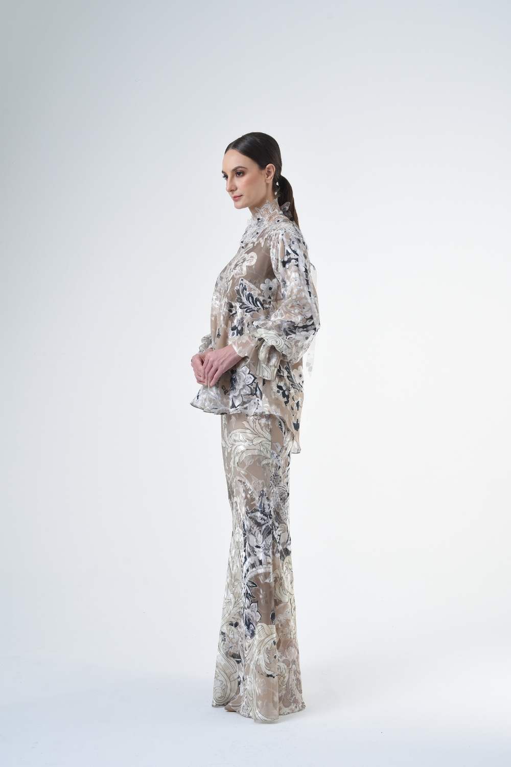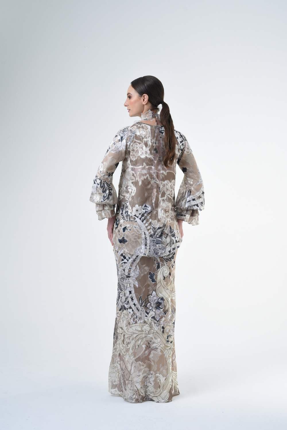 This stylish two-piece set features a 3” drop shoulder loose A-cut top in the short kurung style, paired with a lipat batik skirt. Designed with a contemporary geomatic and floral motif, it offers a fresh and versatile look, perfect for any occasion. Tailored for the confident, stylish woman, this collection exudes effortless elegance and charm.