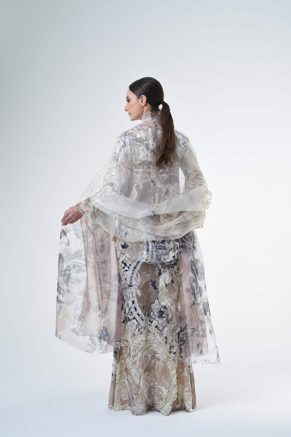• Soft jacquard chiffon with flowers embosses