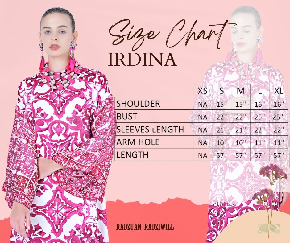 The ‘A’ cut loose twill kaftan named IRDINA is notable for its fresh and versatile cut, featuring modern geomatic placement and a geomatic motif. This authentic look is defined by a sleek, well-defined silhouette that adds a touch of glam to your Ramadhan sensations.