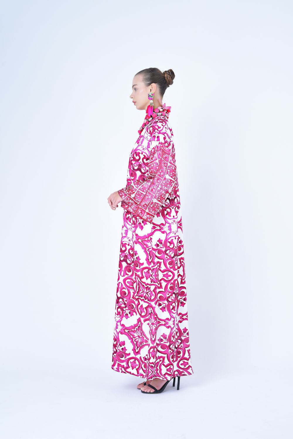The ‘A’ cut loose twill kaftan named IRDINA is notable for its fresh and versatile cut, featuring modern geomatic placement and a geomatic motif. This authentic look is defined by a sleek, well-defined silhouette that adds a touch of glam to your Ramadhan sensations.