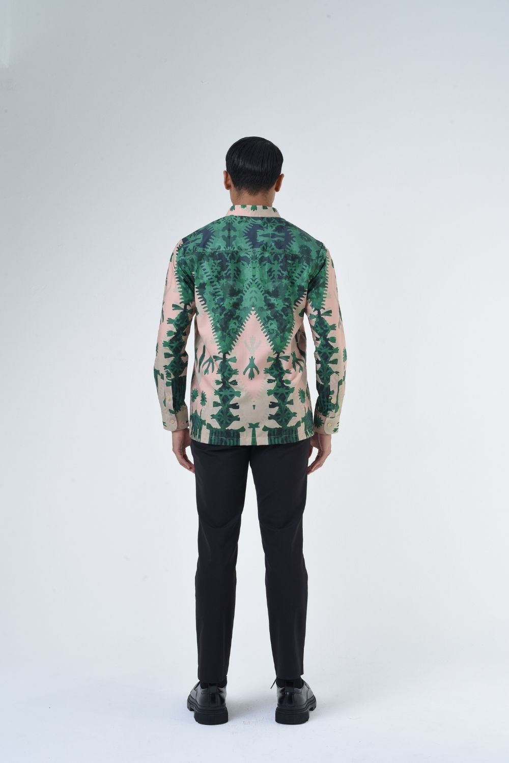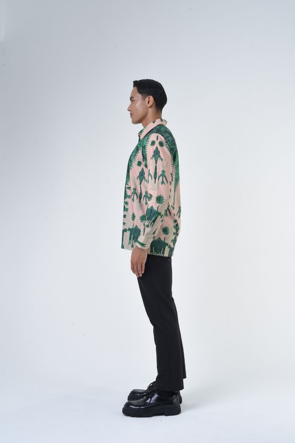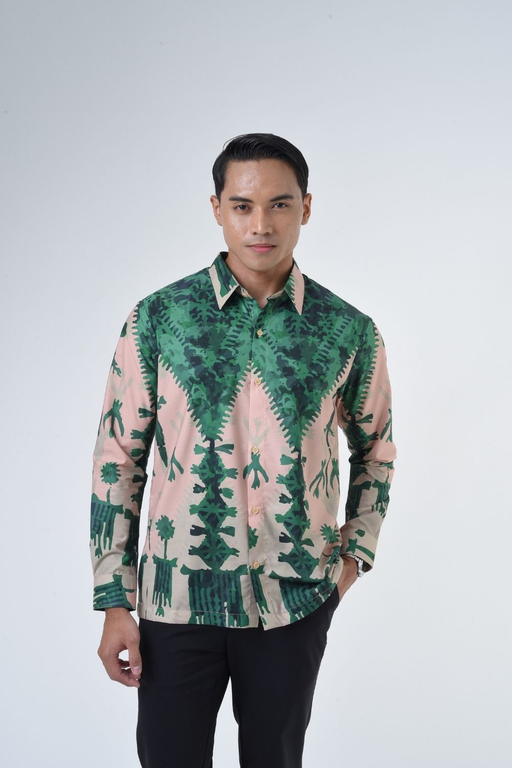 This relaxed cut men’s long sleeve batik shirt features intricate ethnic patterns. Its tailored fit makes it versatile for formal occasions, creating a striking statement piece that celebrates cultural heritage.