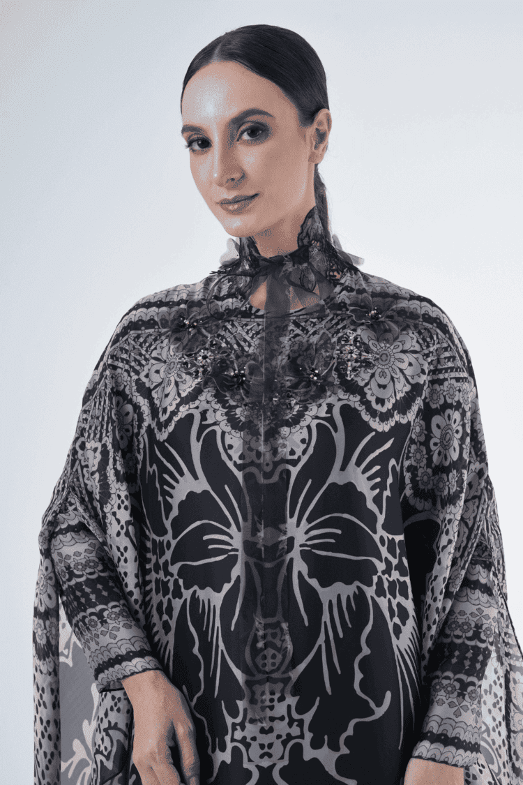 This loose cut long kaftan is prominent by its fresh, versatile cut, illuminated by modern geometric motif. Our kaftan collection is designed to make you feel like the confident, stylish woman you were destined to be.
