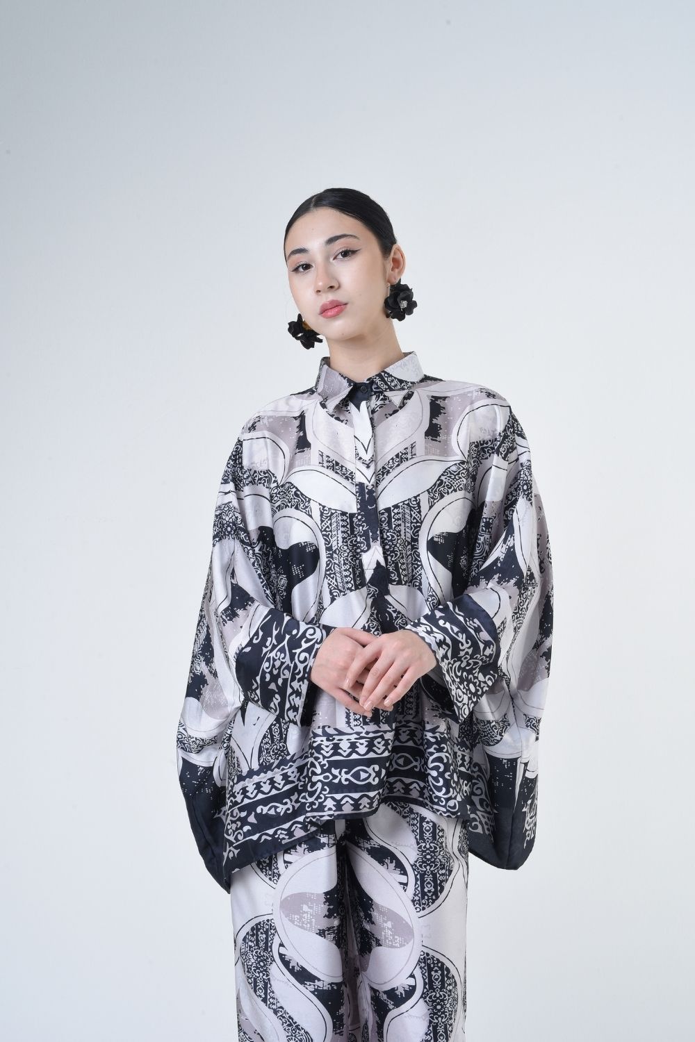 This 2-piece loose top with loose pants is distinguished by its fresh, versatile cut, enlightened by modern geometric placement. Our collection is designed to make you feel like the confident, stylish woman you were destined to be.