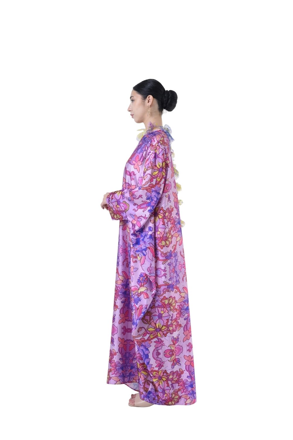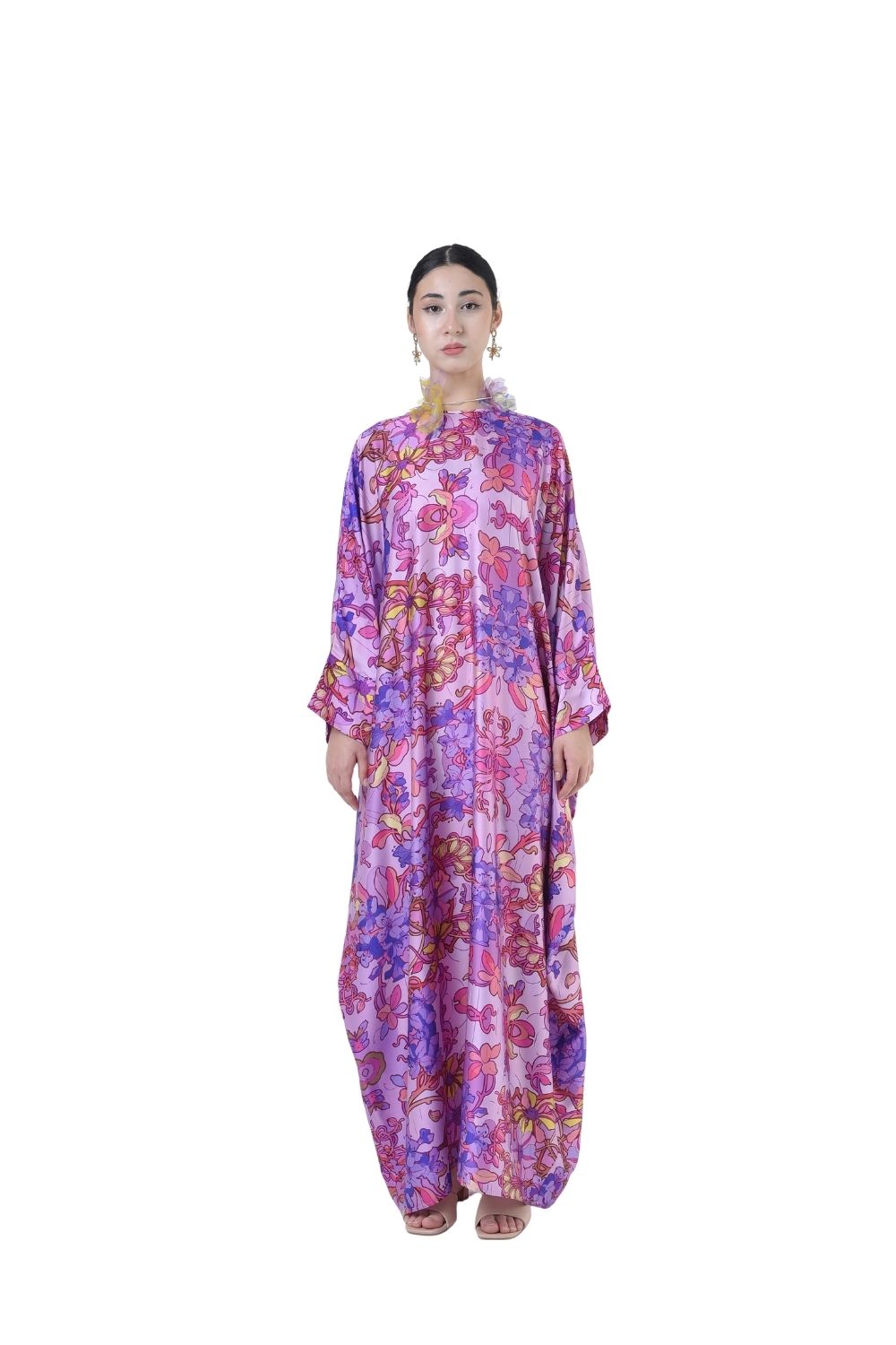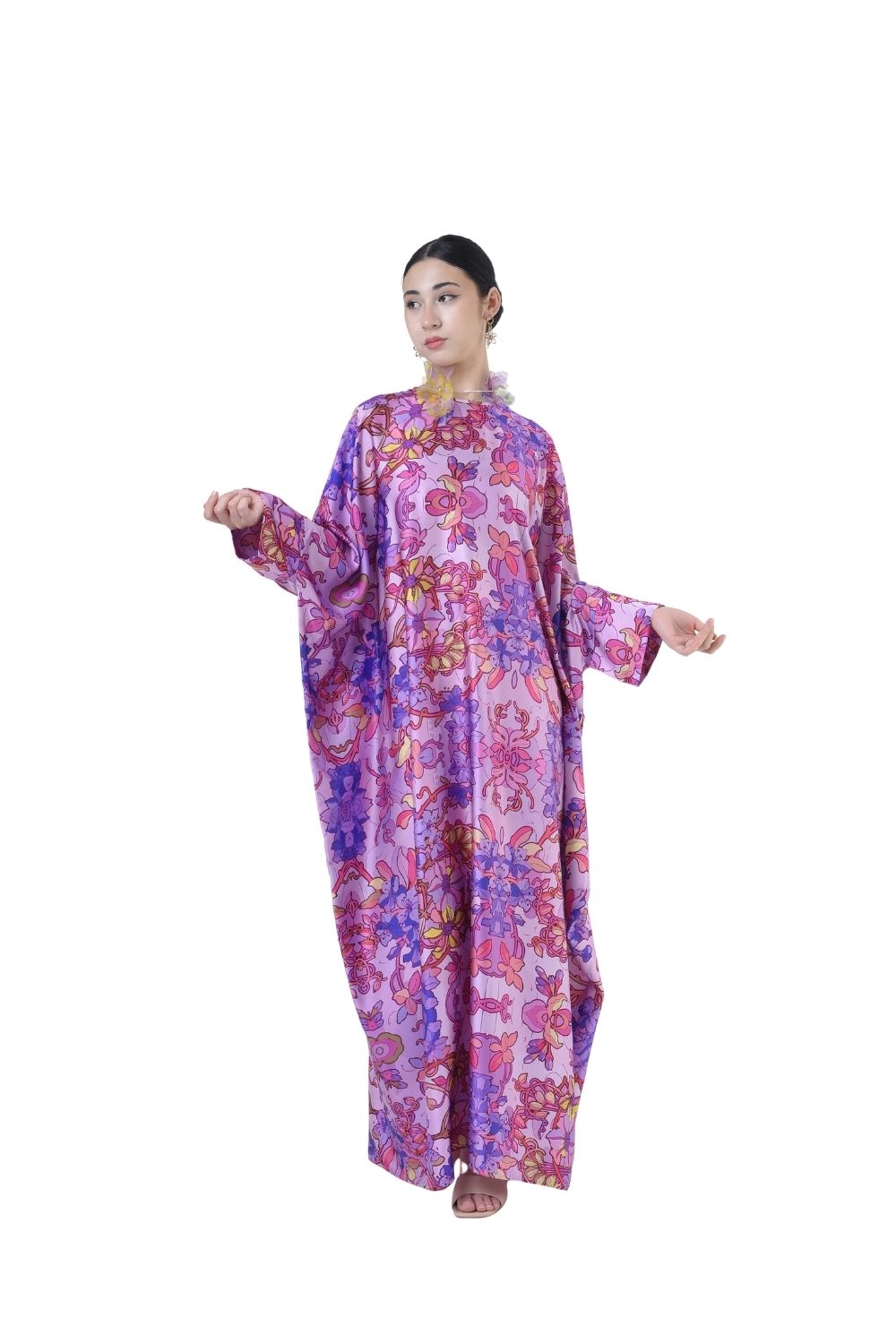 This loose cut long kaftan is prominent by its fresh, versatile cut, illuminated by batik floral. Our kaftan collection is designed to make you feel like the confident, stylish woman you were destined to be.