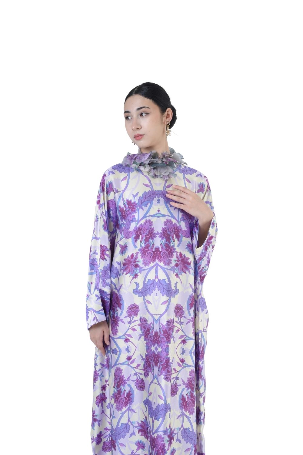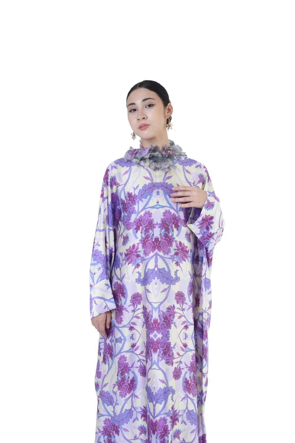 This loose cut long kaftan is prominent by its fresh, versatile cut, illuminated by batik floral. Our kaftan collection is designed to make you feel like the confident, stylish woman you were destined to be.