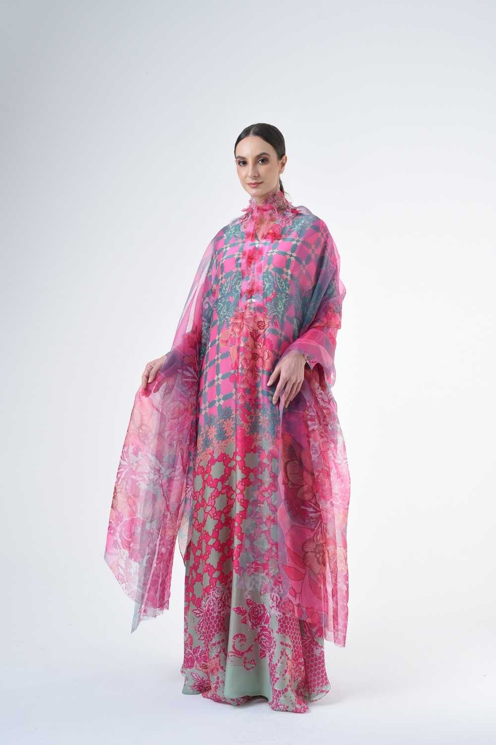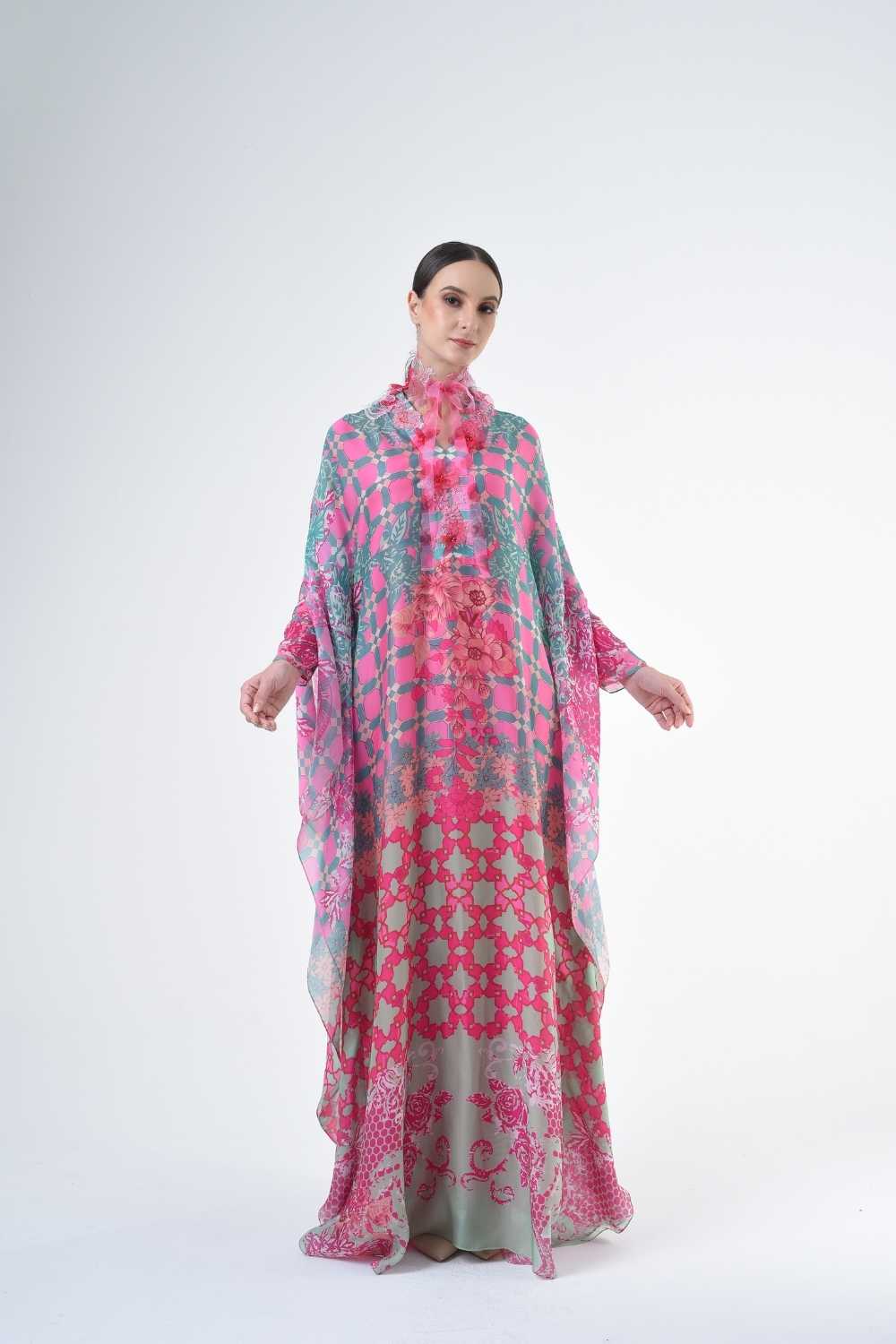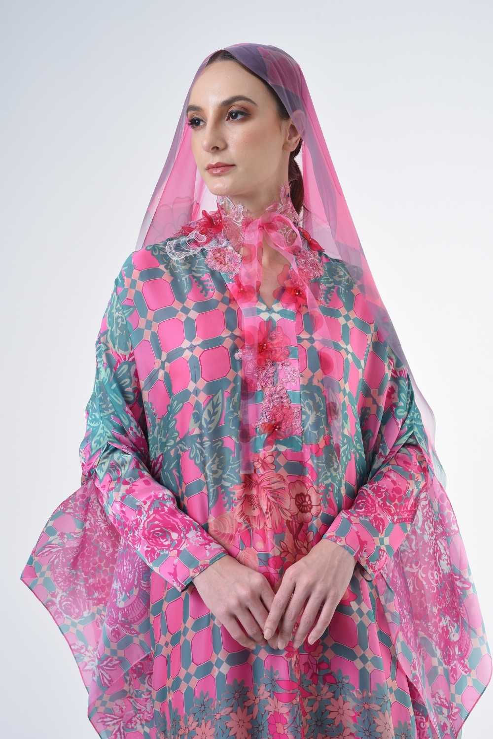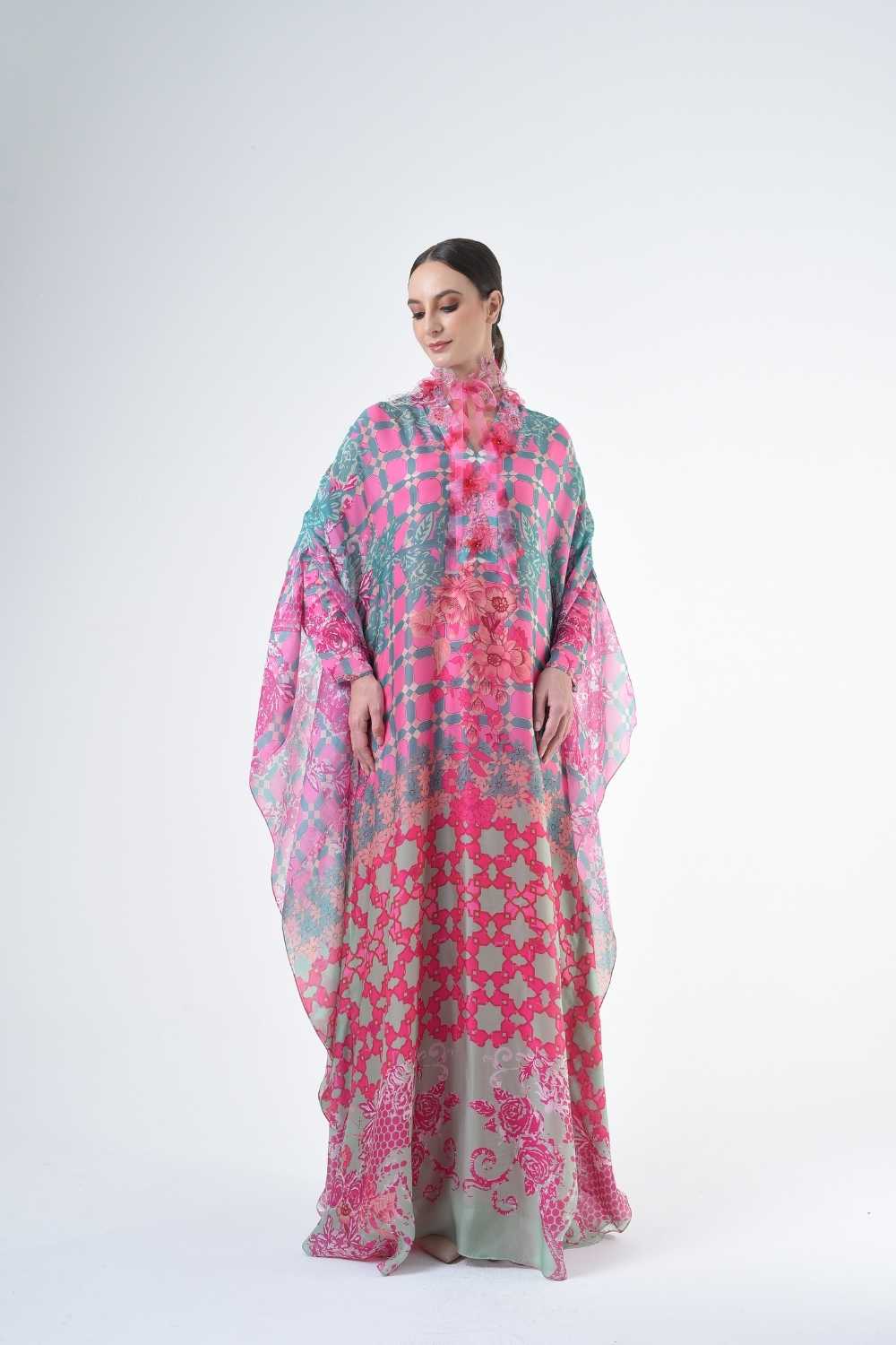This loose cut long kaftan is prominent by its fresh, versatile cut, illuminated by modern antique tiles and floral batik motif. Our kaftan collection is designed to make you feel like the confident, stylish woman you were destined to be.
