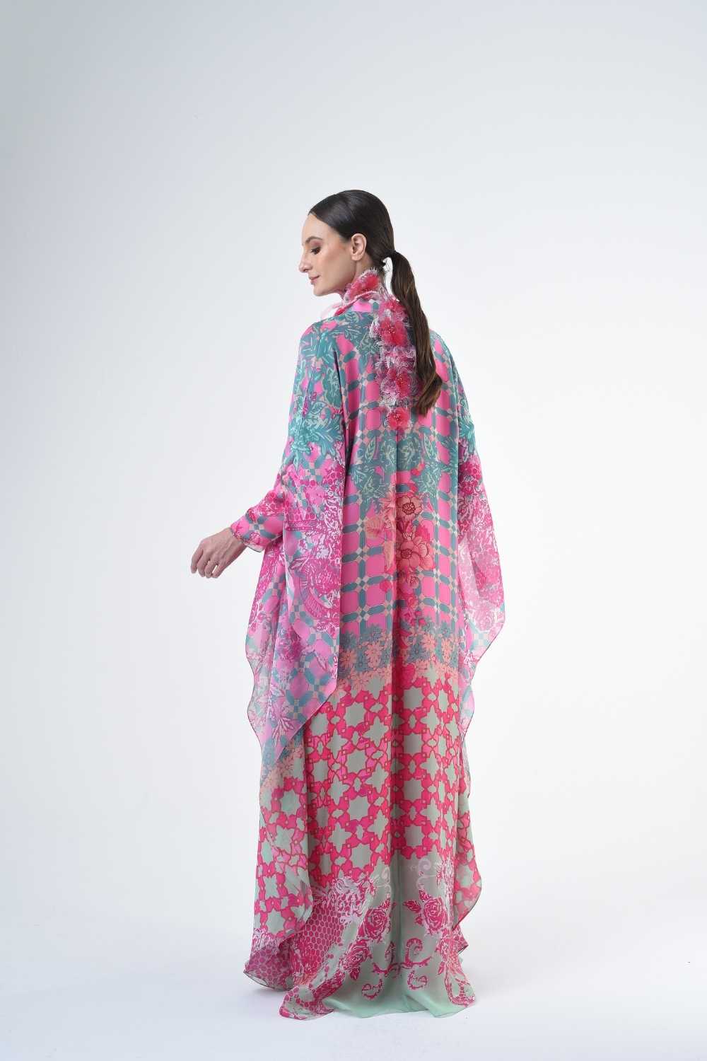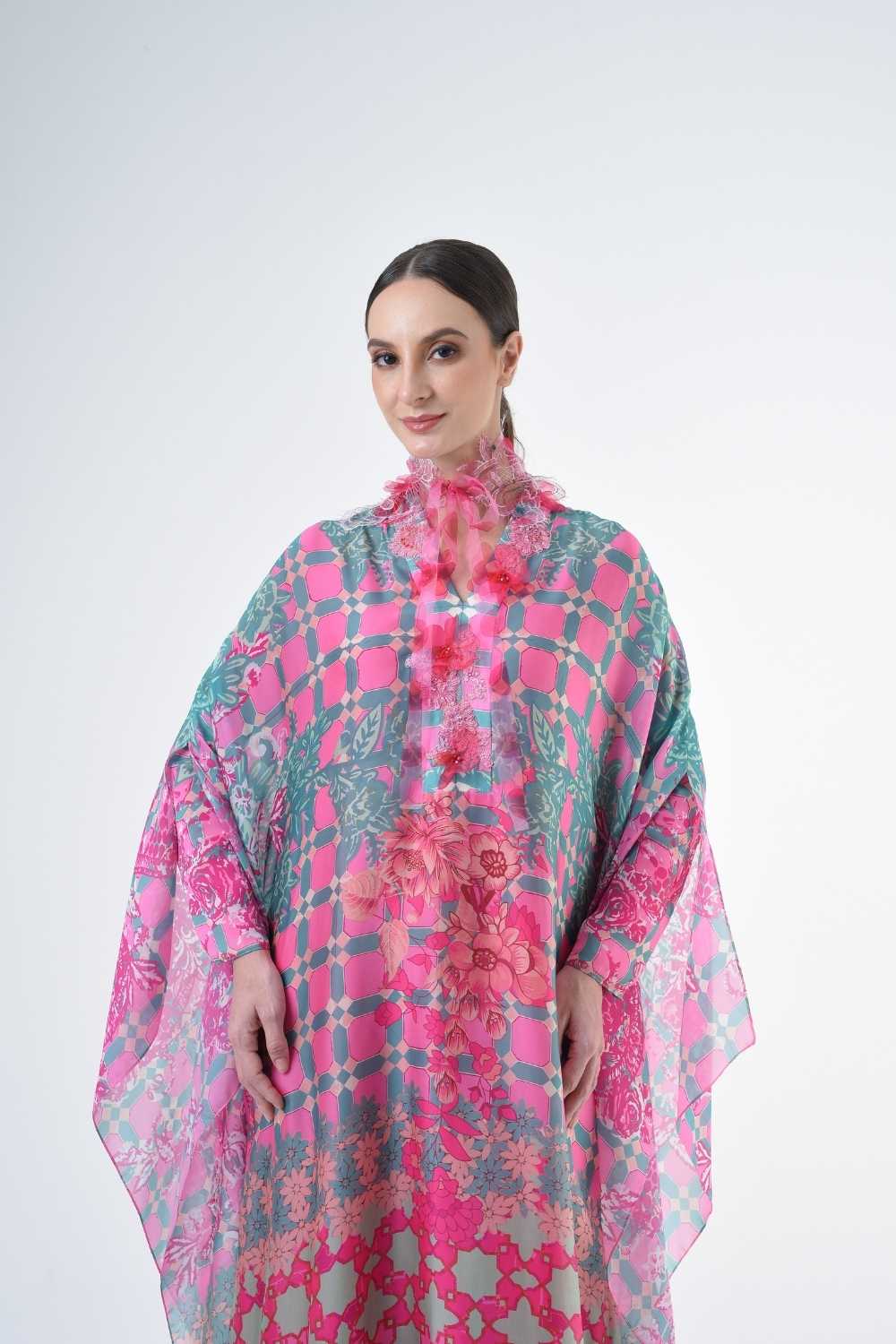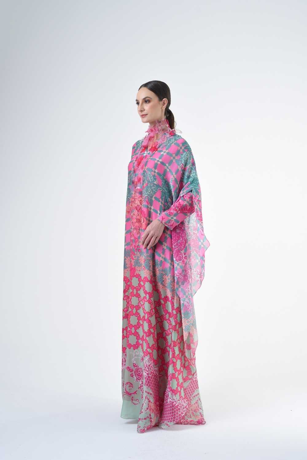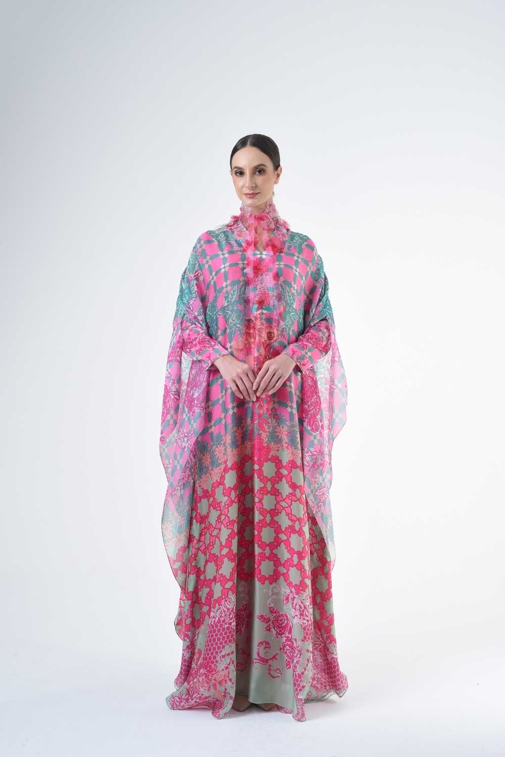 This loose cut long kaftan is prominent by its fresh, versatile cut, illuminated by modern antique tiles and floral batik motif. Our kaftan collection is designed to make you feel like the confident, stylish woman you were destined to be.