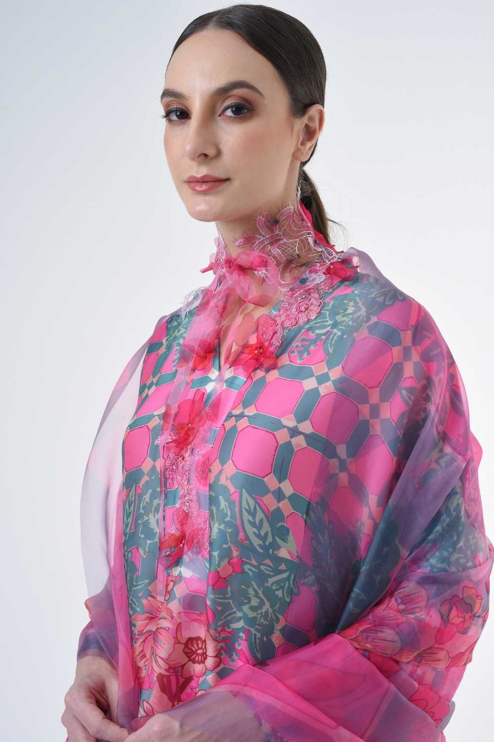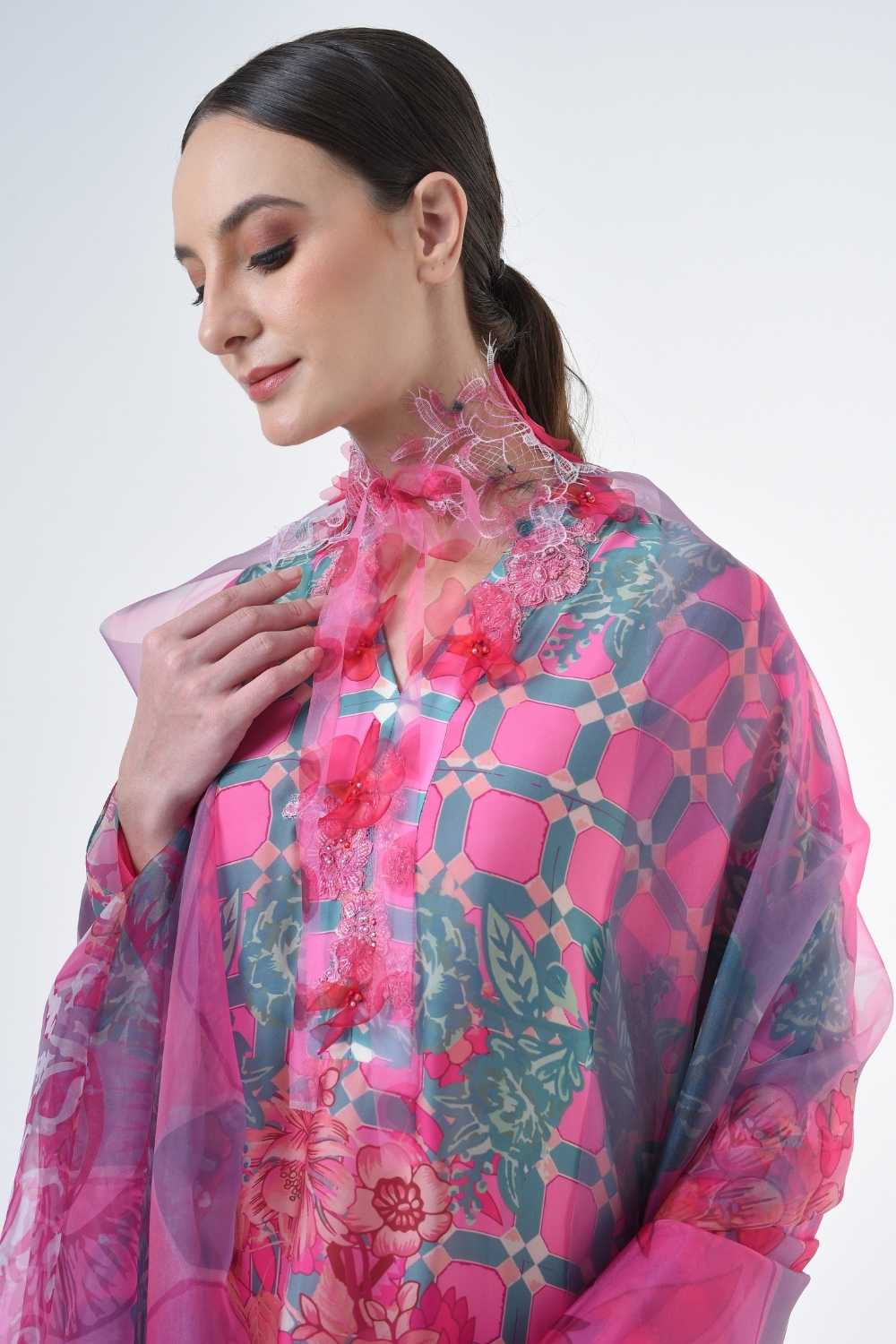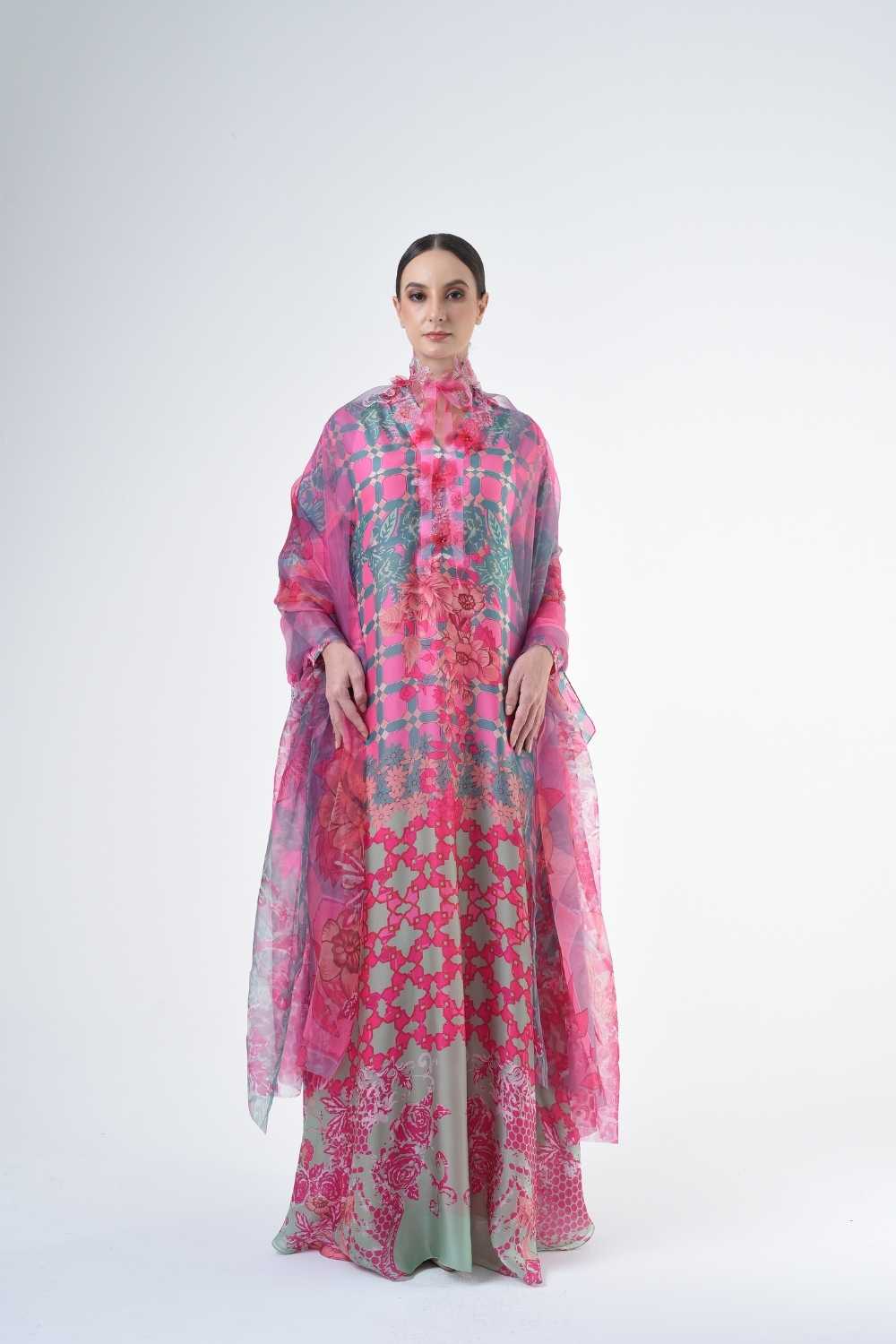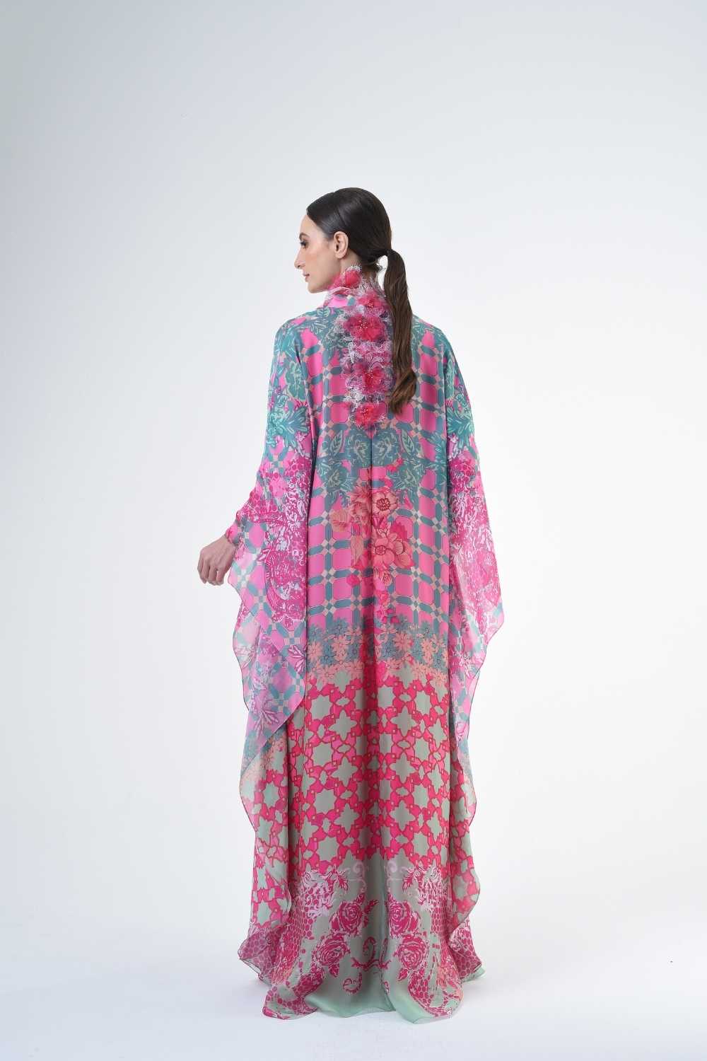 This loose cut long kaftan is prominent by its fresh, versatile cut, illuminated by modern antique tiles and floral batik motif. Our kaftan collection is designed to make you feel like the confident, stylish woman you were destined to be.