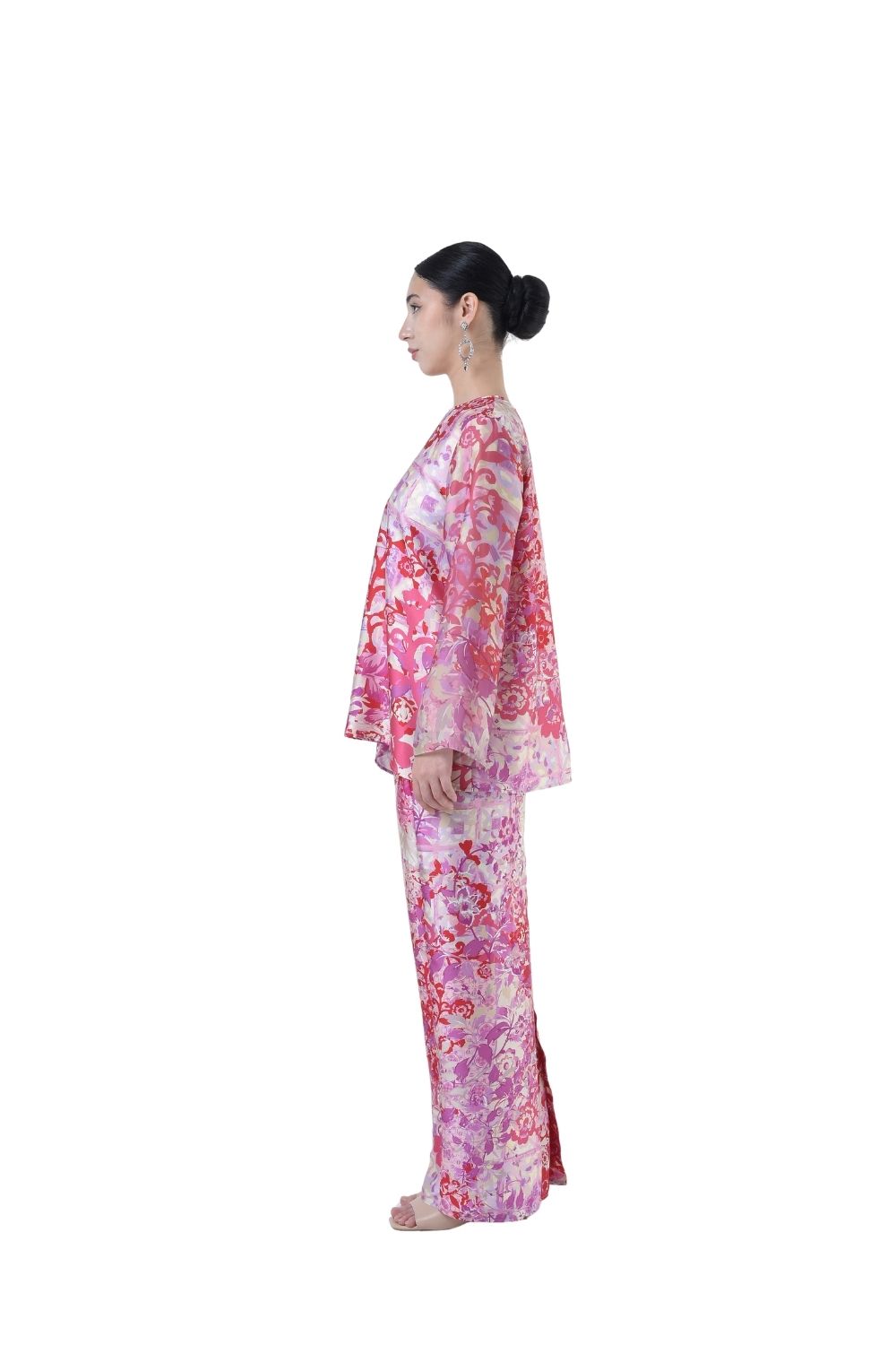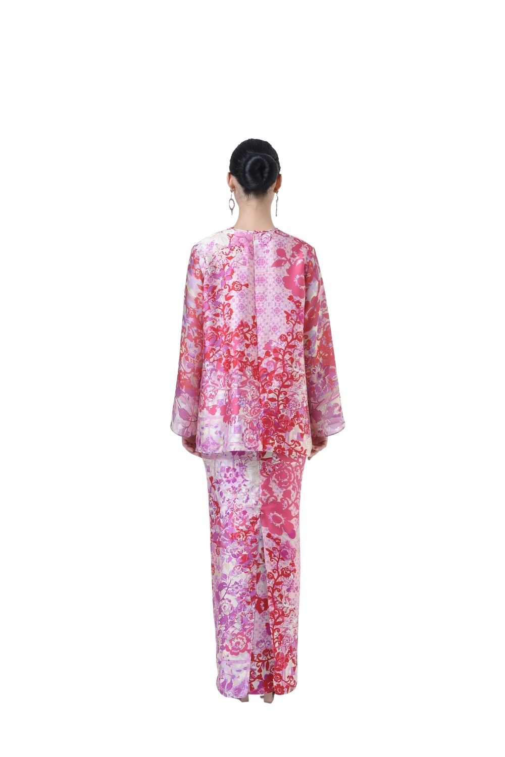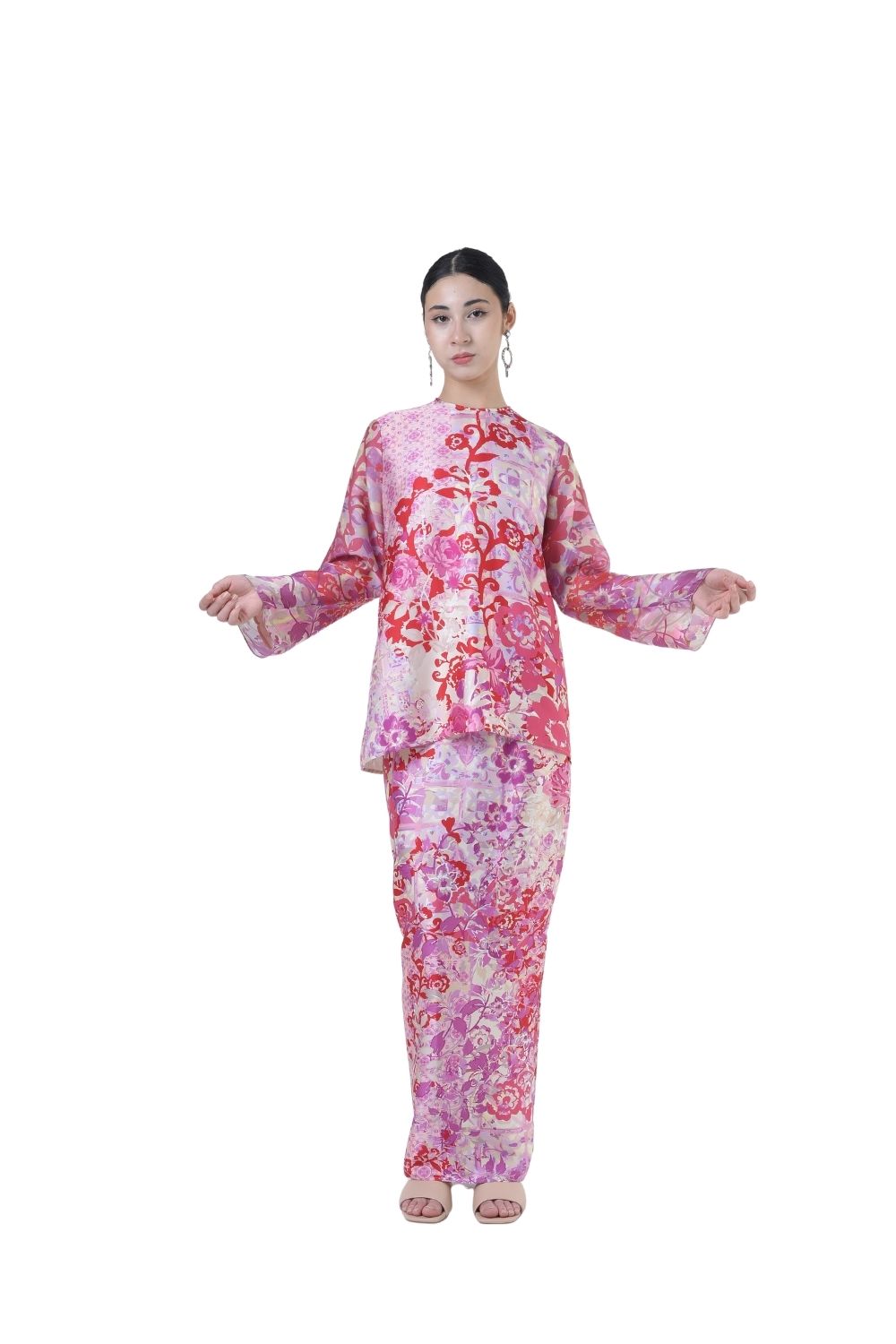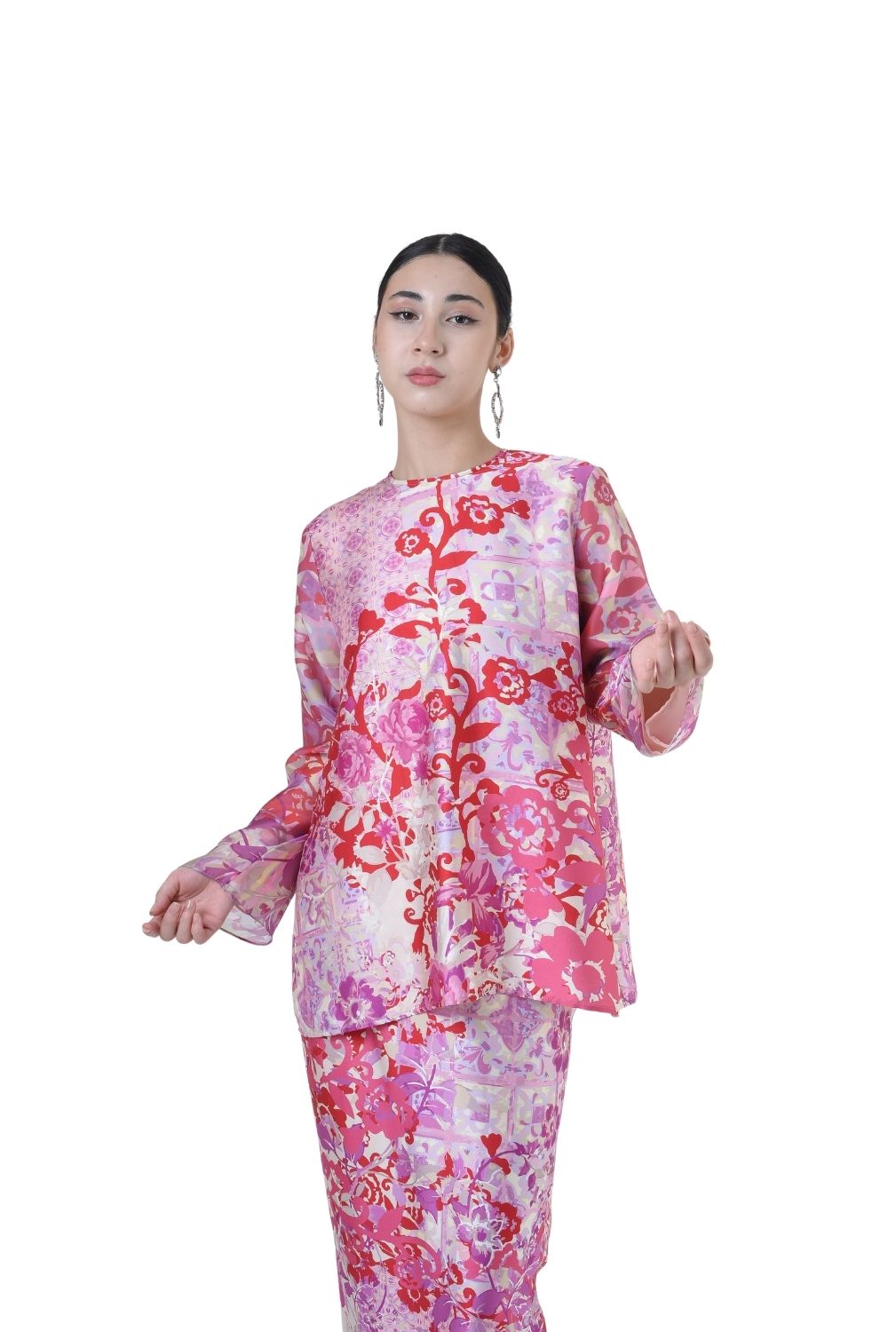 This stylish two-piece set features a loose A-cut top in the short kurung style, paired with a box pleated skirt. Designed with a contemporary floral tile motif, it offers a fresh and versatile look, perfect for any occasion. Tailored for the confident, stylish woman, this collection exudes effortless elegance and charm.