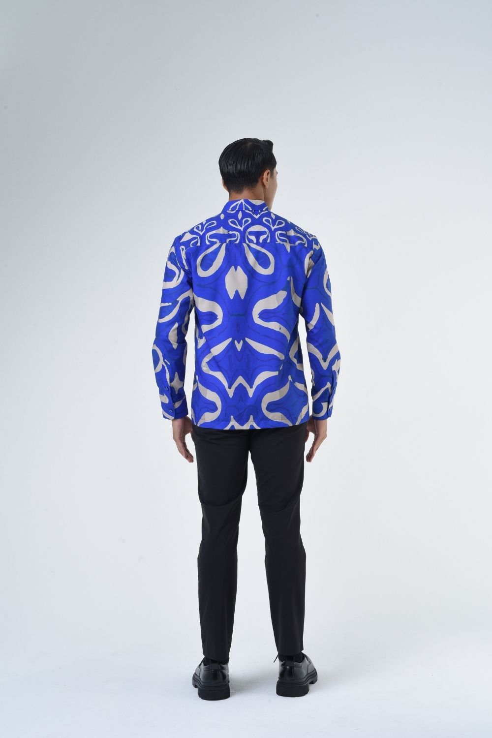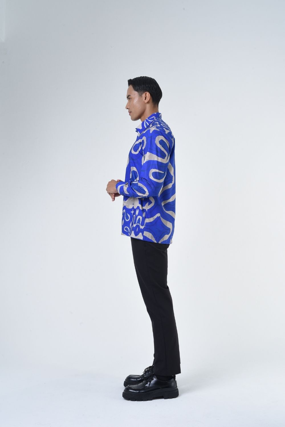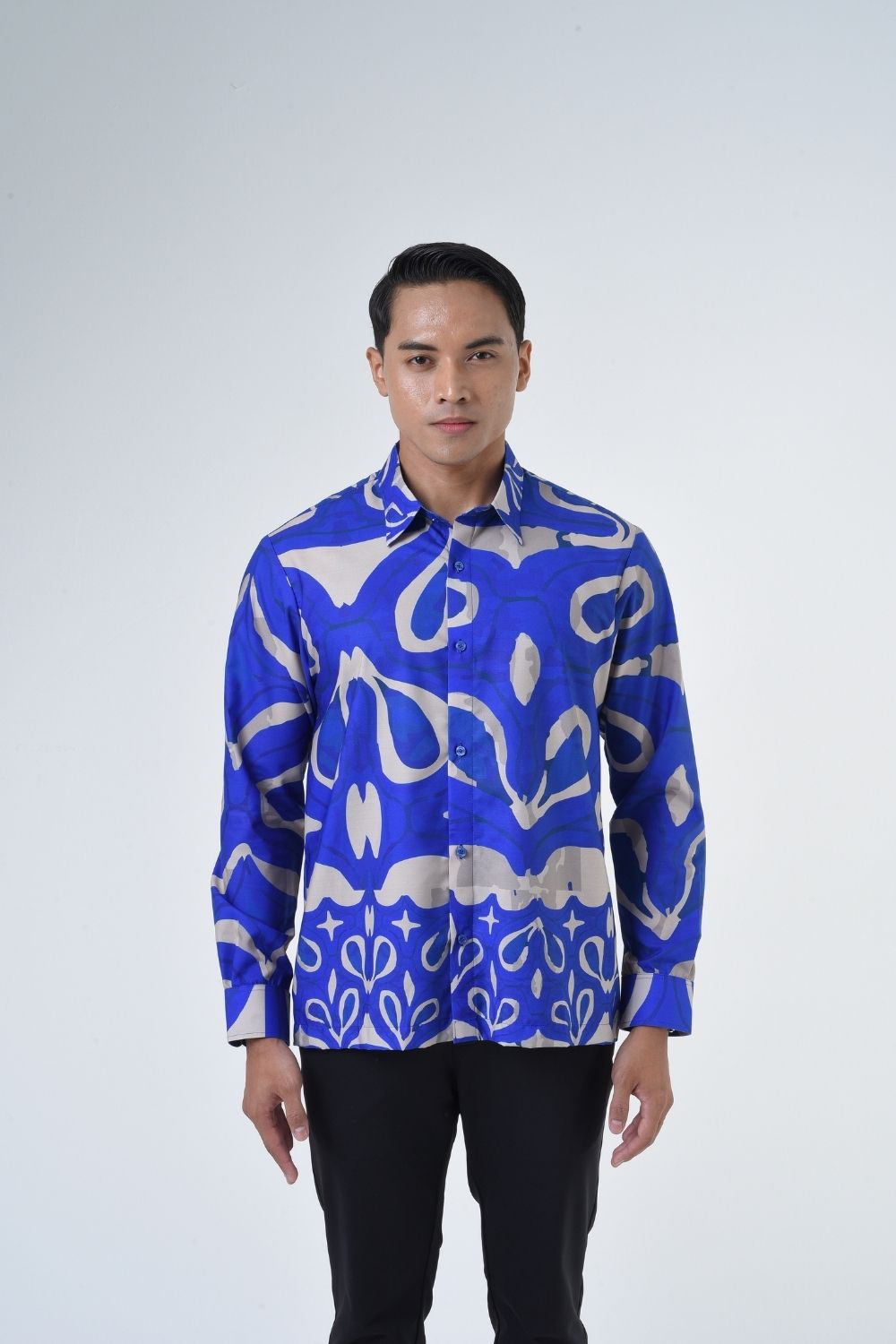 This relaxed cut men’s long sleeve batik shirt features intricate geometric patterns. Its tailored fit makes it versatile for formal occasions, creating a striking statement piece that celebrates cultural heritage.