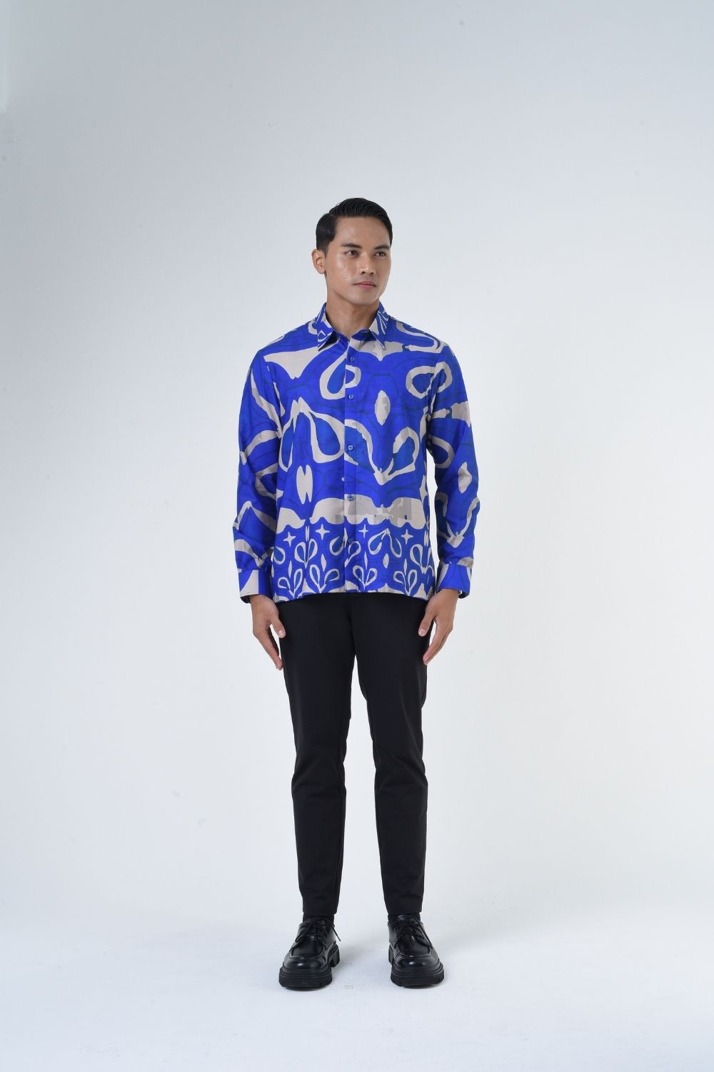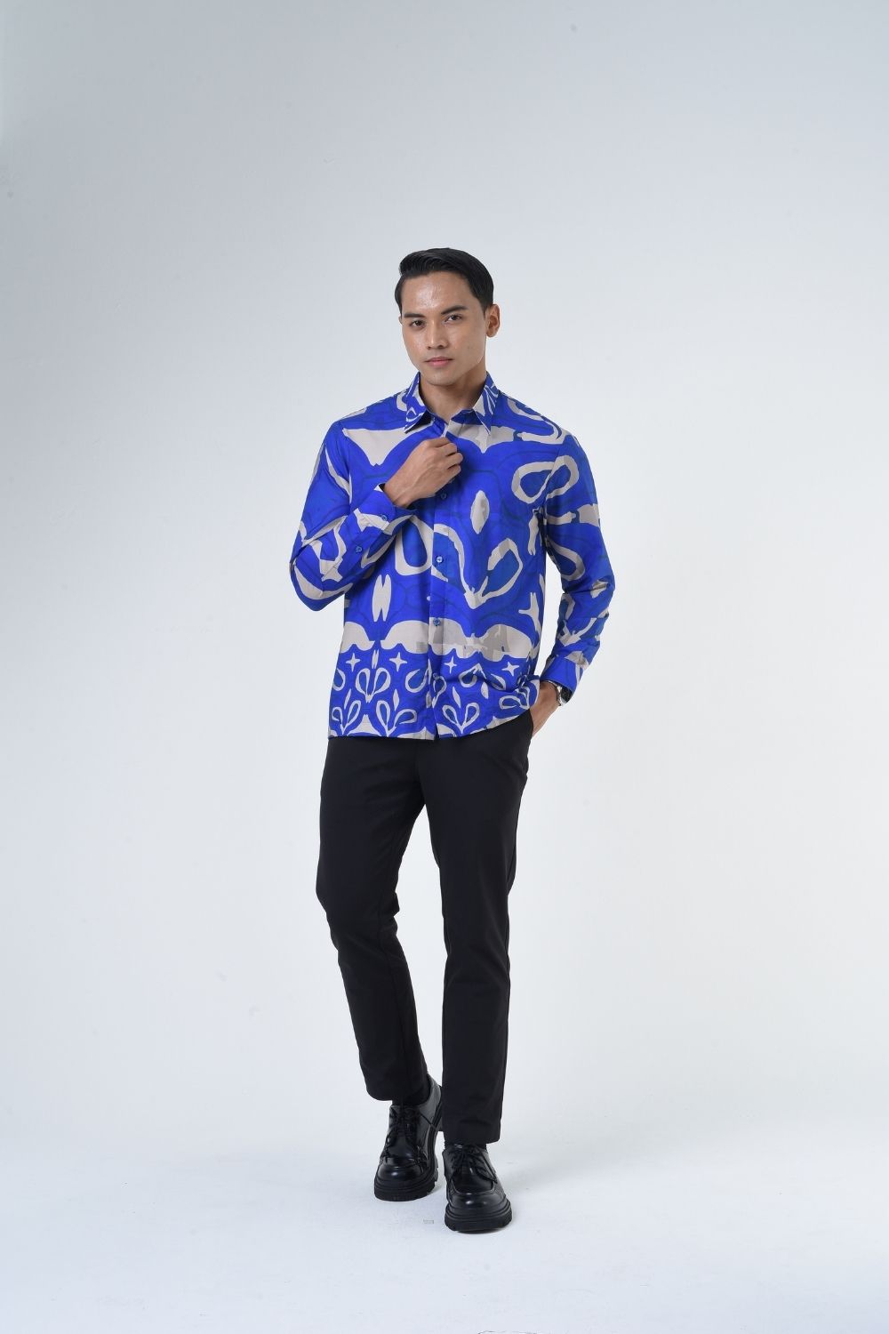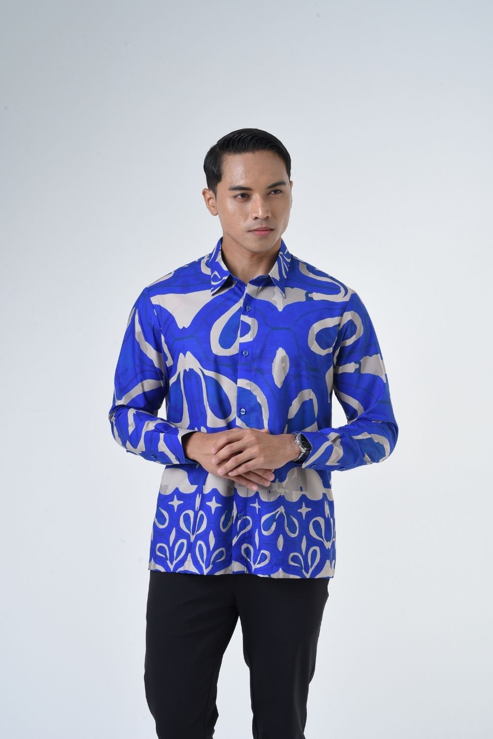 This relaxed cut men’s long sleeve batik shirt features intricate geometric patterns. Its tailored fit makes it versatile for formal occasions, creating a striking statement piece that celebrates cultural heritage.