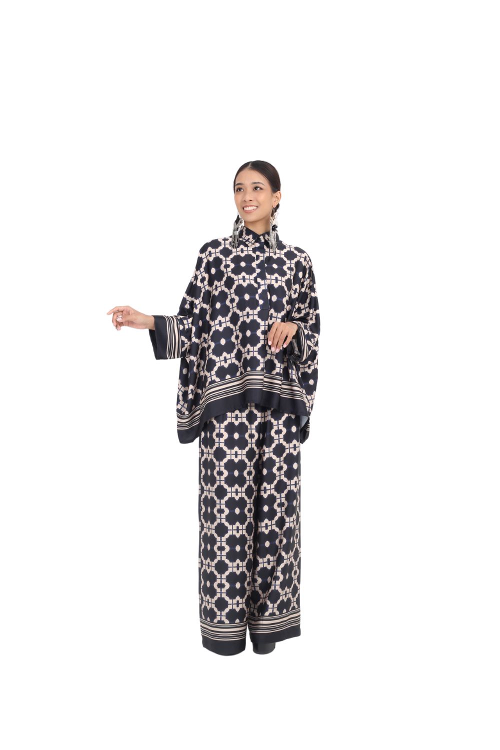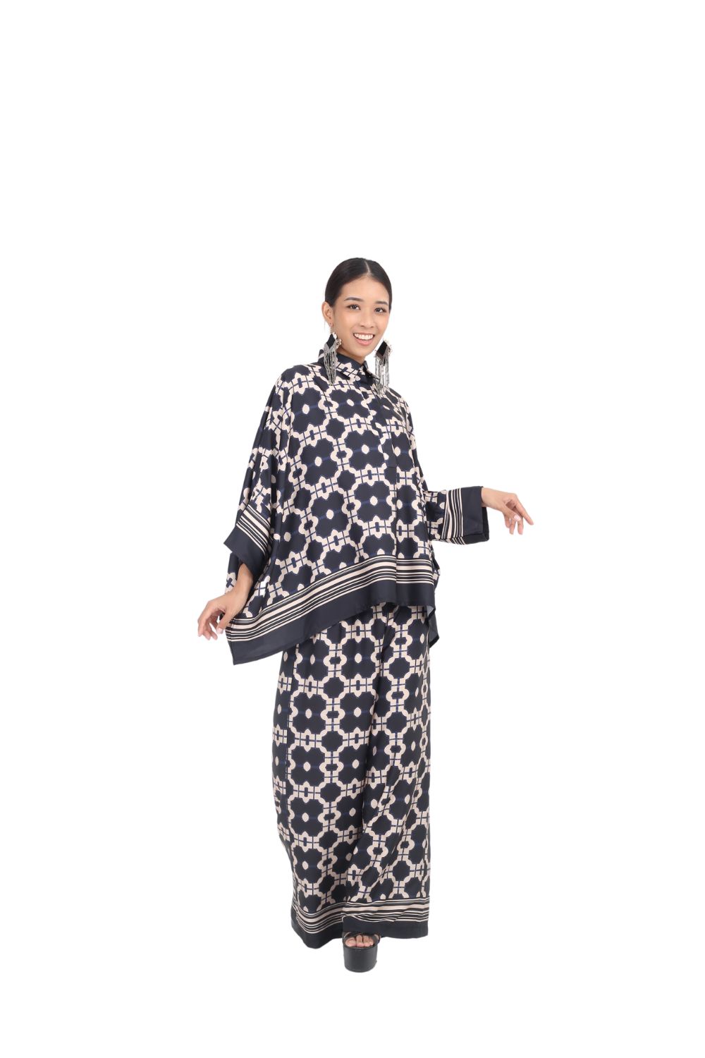 This 2-piece loose top with loose pants is distinguished by its fresh, versatile cut, enlightened by