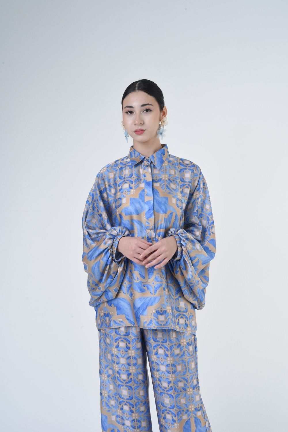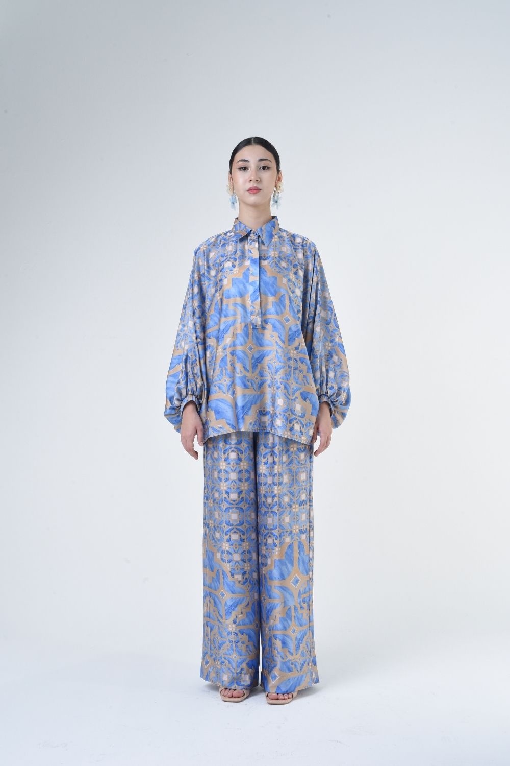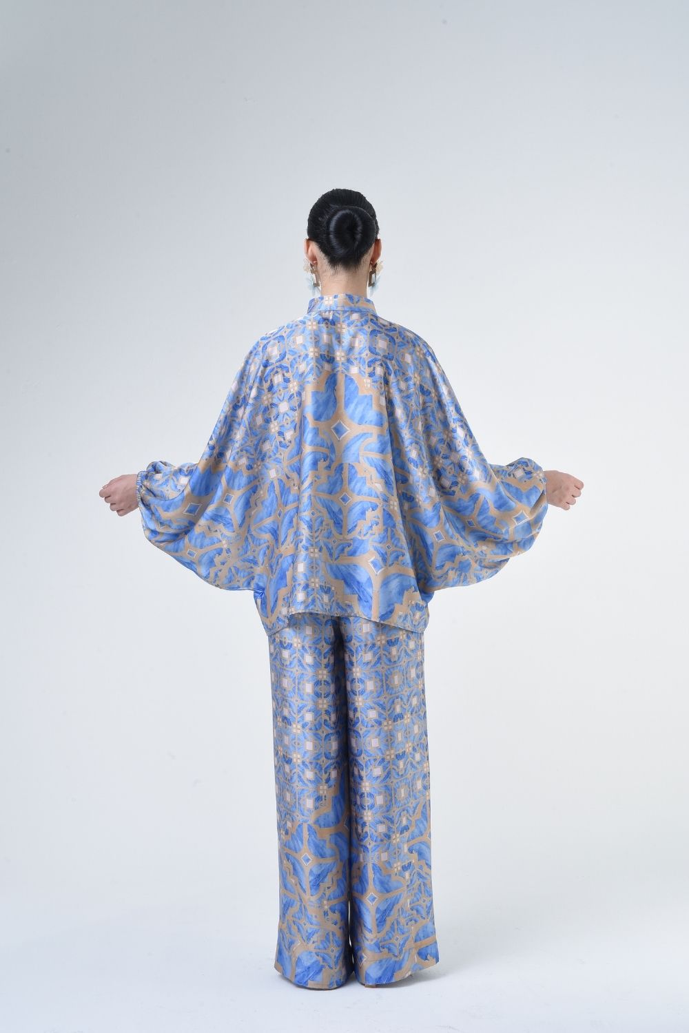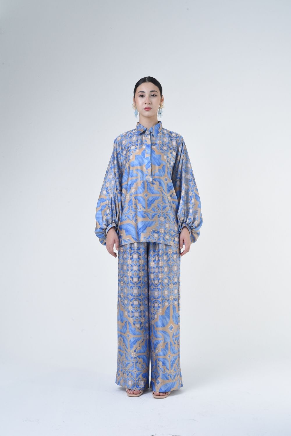 This 2-piece loose top with loose pants is distinguished by its fresh, versatile cut, enlightened by modern antique tiles placement. Our collection is designed to make you feel like the confident, stylish woman you were destined to be.