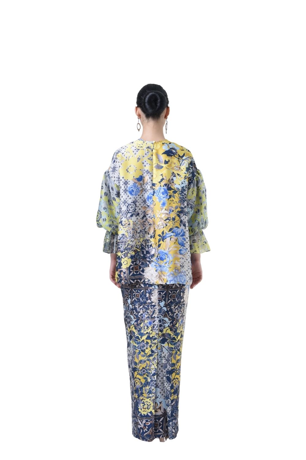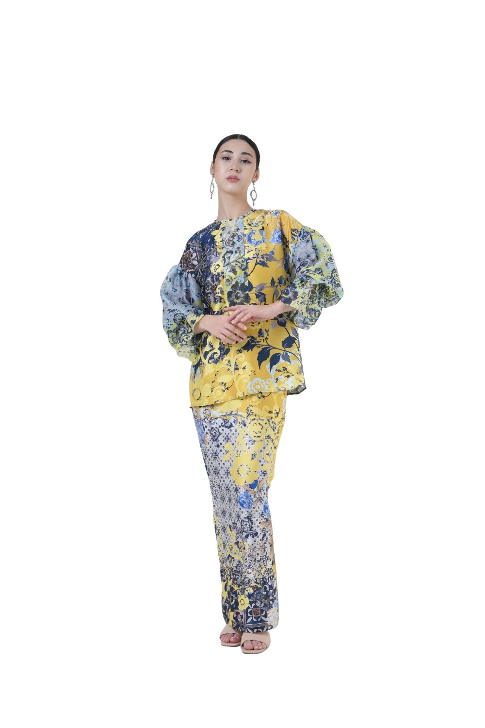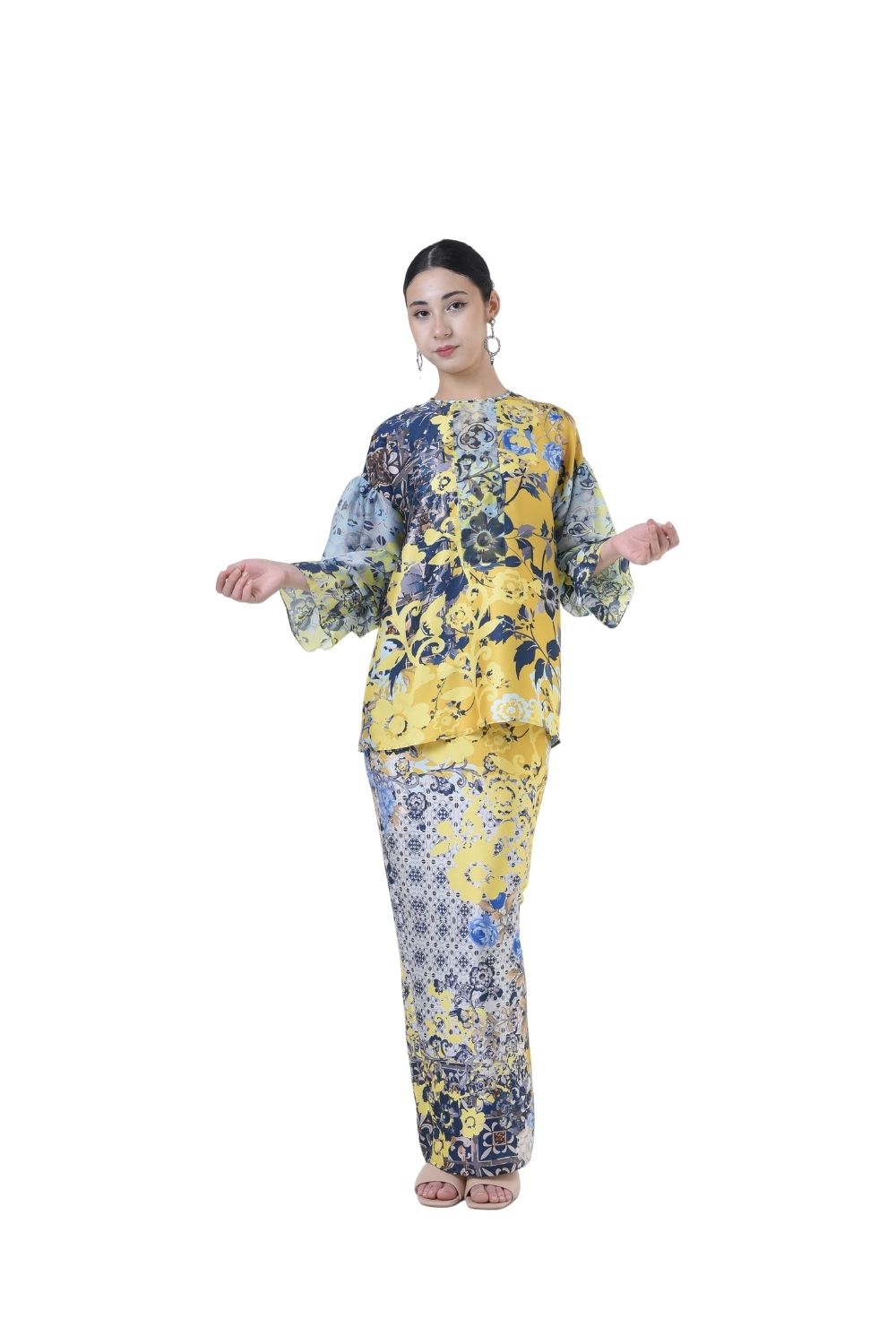 This stylish two-piece set features a loose A-cut top in the short kurung style, paired with a box pleated skirt. Designed with a contemporary floral tile motif, it offers a fresh and versatile look, perfect for any occasion. Tailored for the confident, stylish woman, this collection exudes effortless elegance and charm.