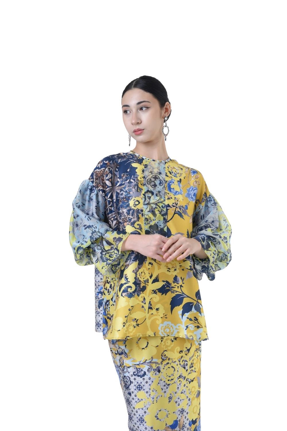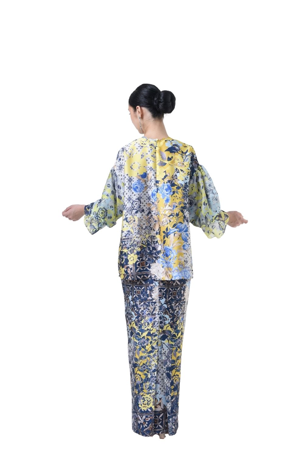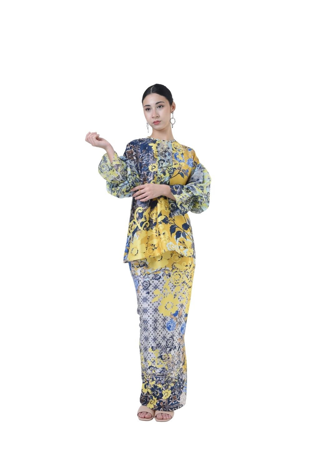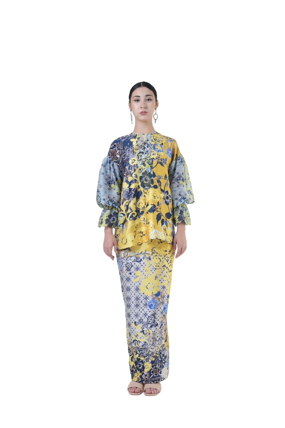 This stylish two-piece set features a loose A-cut top in the short kurung style, paired with a box pleated skirt. Designed with a contemporary floral tile motif, it offers a fresh and versatile look, perfect for any occasion. Tailored for the confident, stylish woman, this collection exudes effortless elegance and charm.