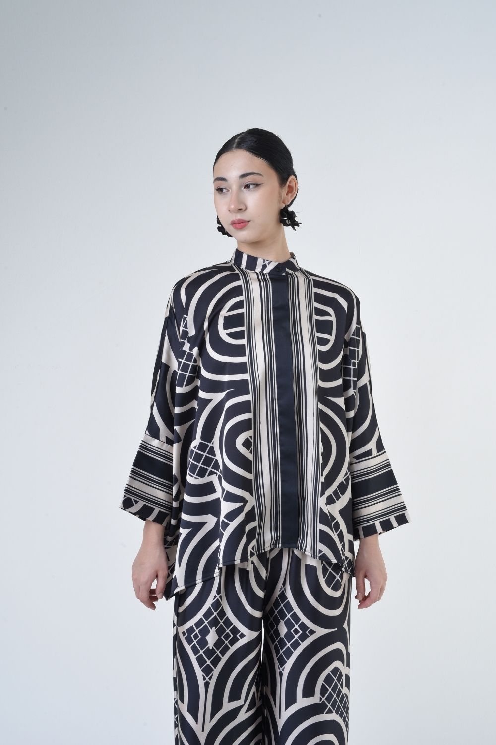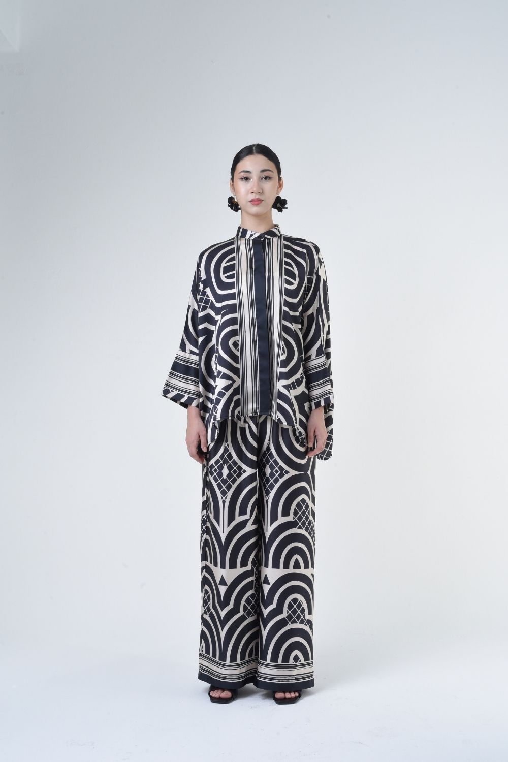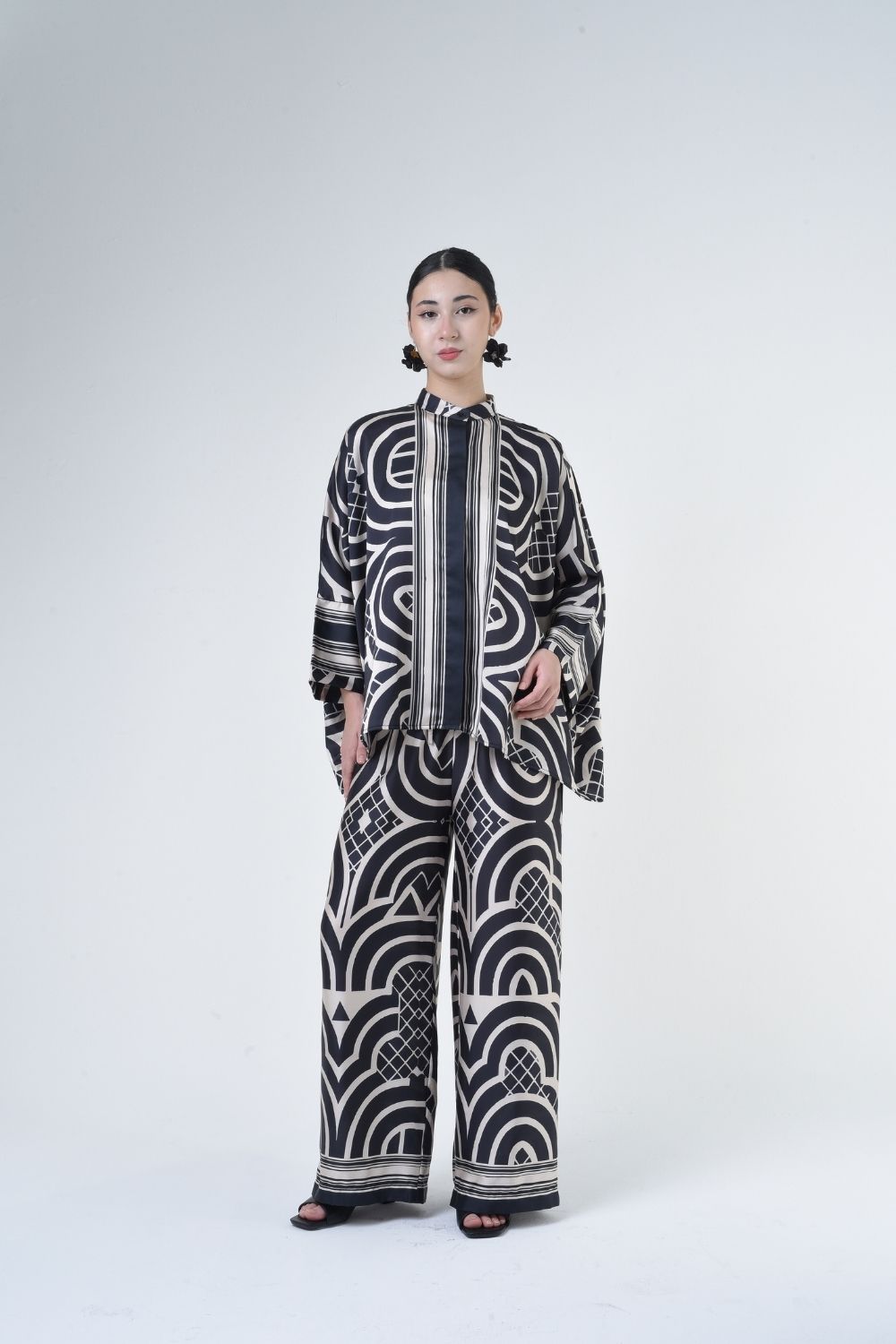 This 2-piece loose top with loose pants is distinguished by its fresh, versatile cut, enlightened by modern geometric placement. Our collection is designed to make you feel like the confident, stylish woman you were destined to be.