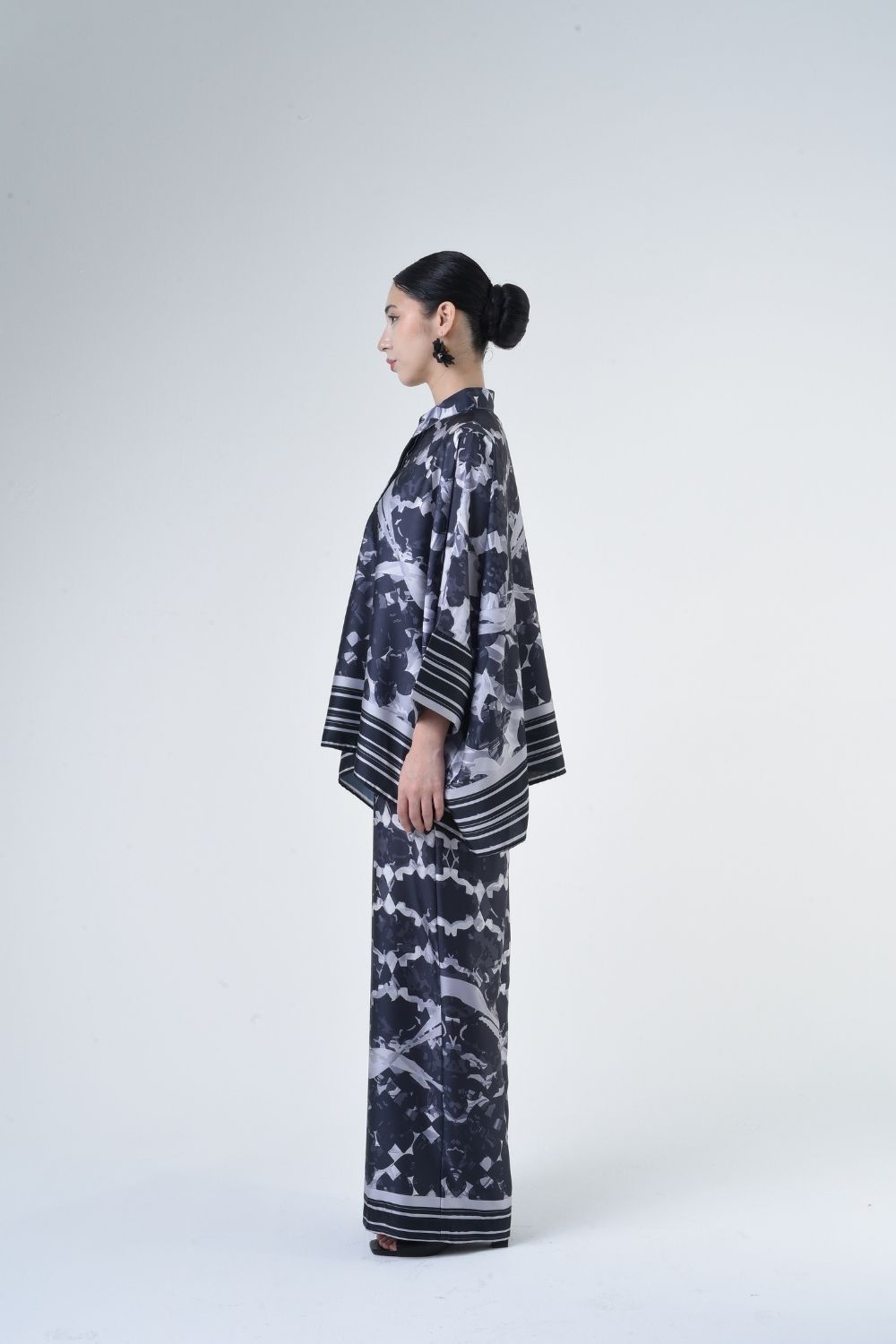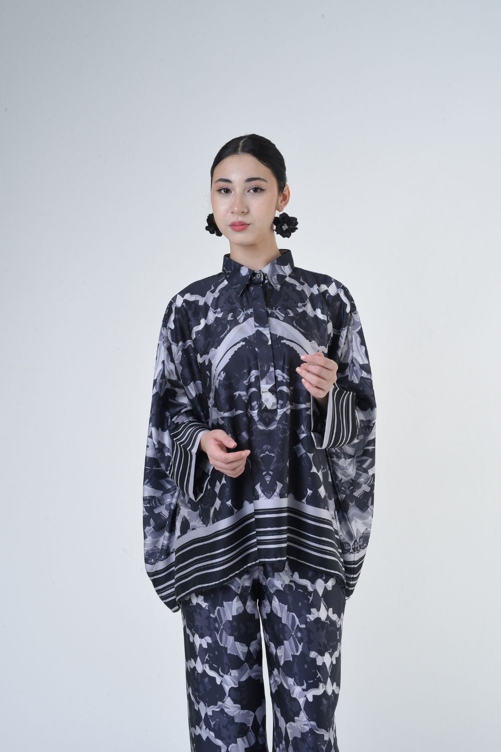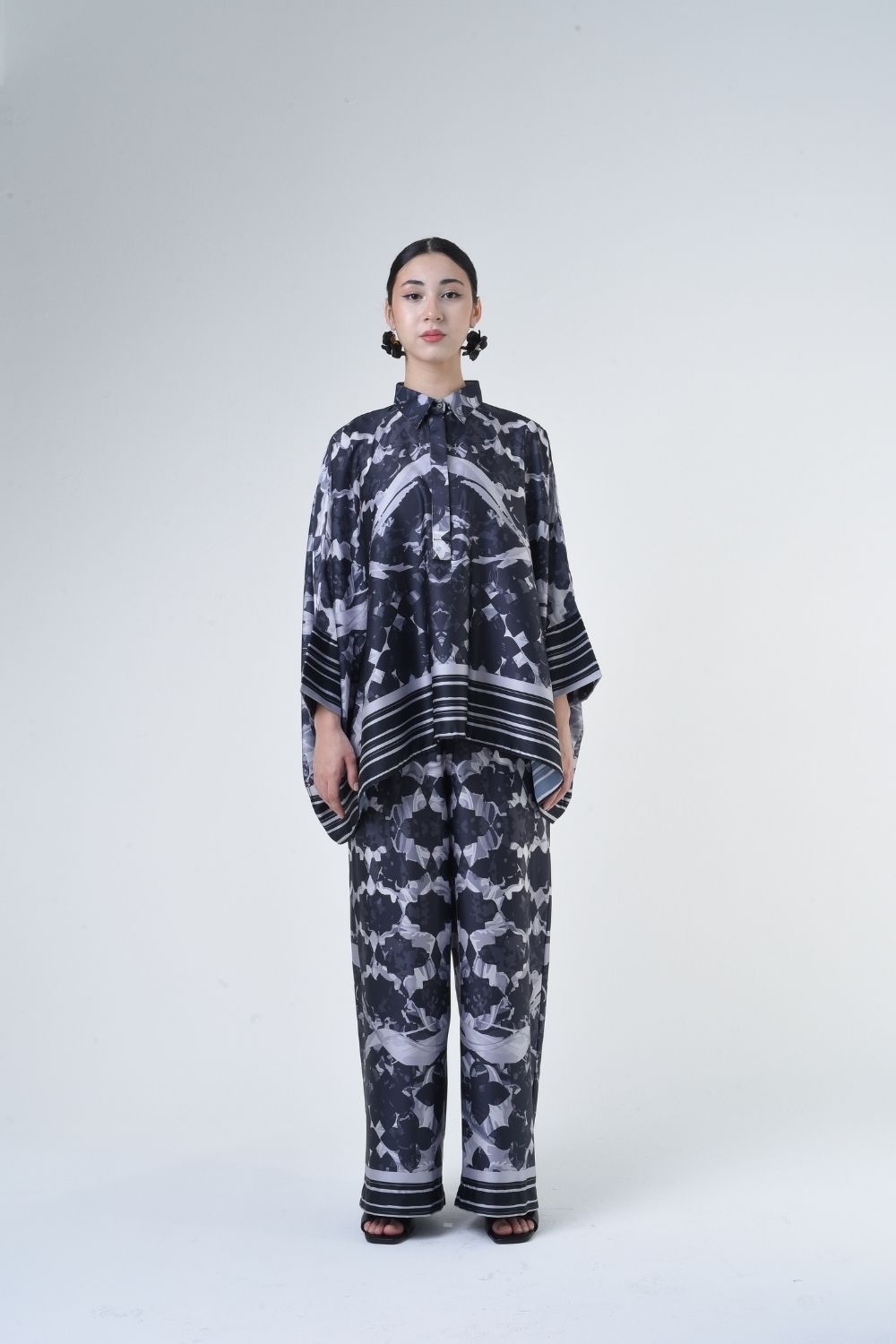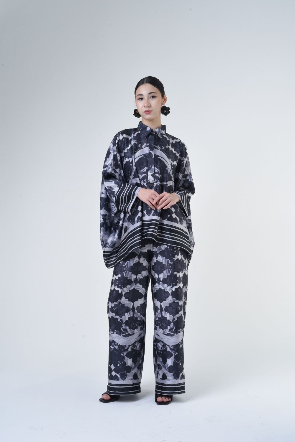 This 2-piece loose top with loose pants is distinguished by its fresh, versatile cut, enlightened by modern antique tiles placement. Our collection is designed to make you feel like the confident, stylish woman you were destined to be.