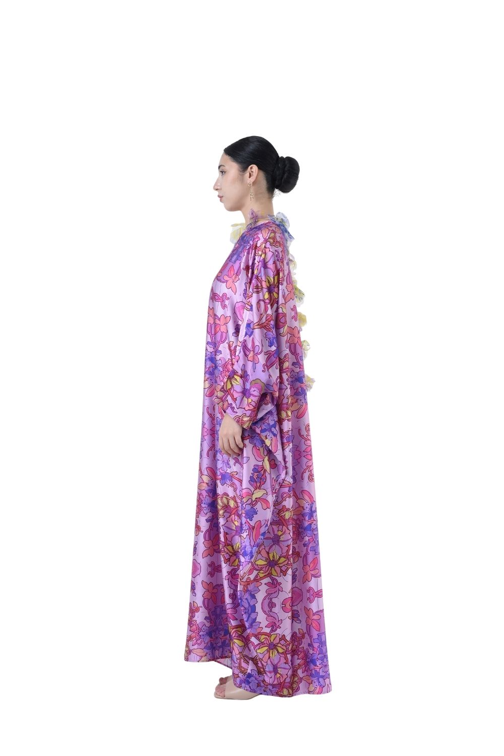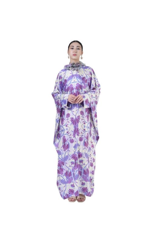 Description This loose cut long kaftan is prominent by its fresh, versatile cut, illuminated by batik floral. Our kaftan collection is designed to make you feel like the confident, stylish woman you were destined to be. Details: Composition 100% Heavy Satin Round Neckline Cuff sleeves 4” opening at the back with button Color: Thistle and…
