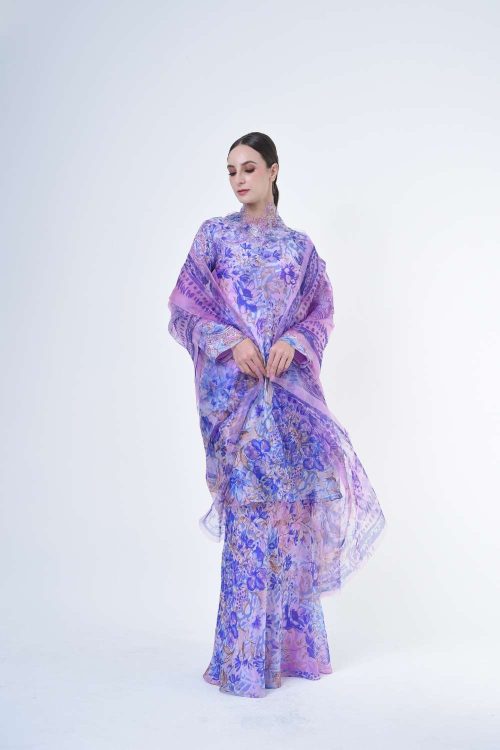 Description: This stylish two-piece set features a loose A-cut top in the short kurung style, paired with a box pleated skirt. Designed with a contemporary floral abstract motif, it offers a fresh and versatile look, perfect for any occasion. Tailored for the confident, stylish woman, this collection exudes effortless elegance and charm. Details: Material Twill…
